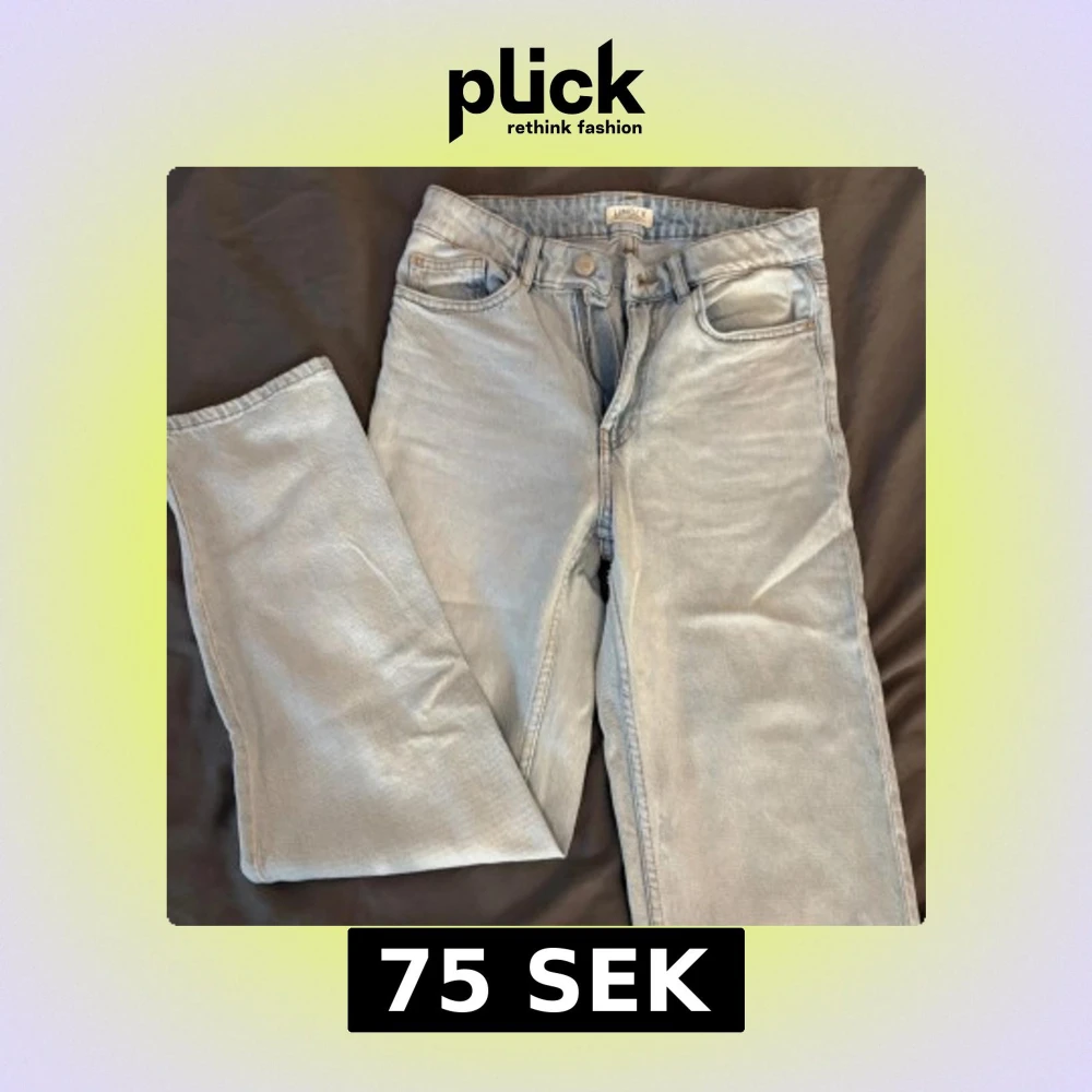 Ljusblå straight jeans i storlek 34 från Lindex. Välanvända men fortfarande i bra skick. Lite korta på mig som är 171. Skriv om närbilder önskas.