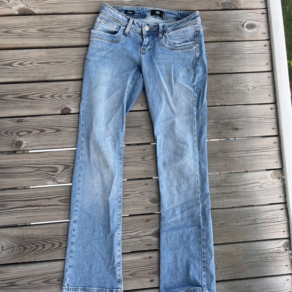 Säljer ett par ljusblå lågmidjade jeans från LTB. Byxorna är bootcut. storlek: 26/32
