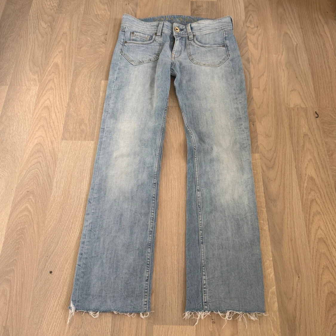 Ljusblå jeans från MEXX med straight fit, klassiska fem fickor och slitna, fransiga benslut. Snygga detaljer på bakfickorna och ett broderat märke bak. Jeansen har en avslappnad vibe och är tillverkade i denim. lågmidjade snygga jeans storlek S:36💗 midjemått 37cm innerbenslängd 75cm fotvidd 18cm pris kan diskuteras vid snabb affär💞