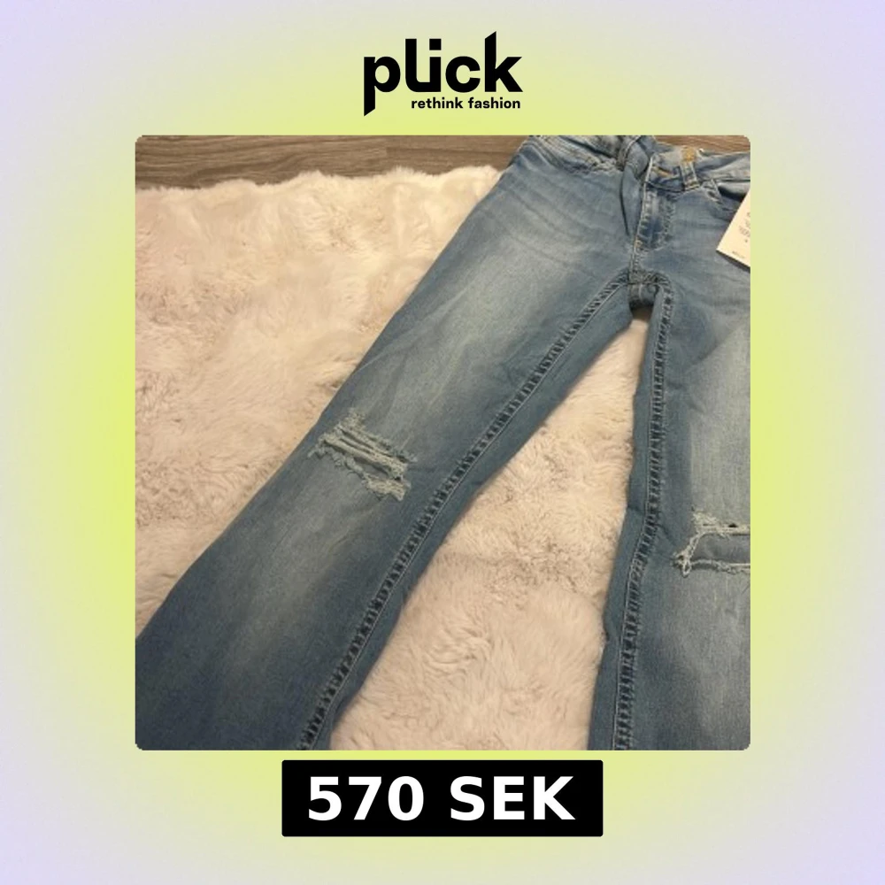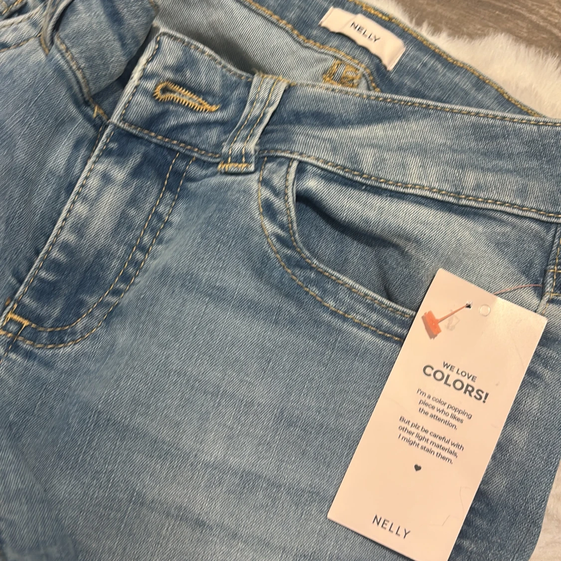 Ljusblå jeans från Nelly med coola slitningar på benen och snygga broderade detaljer på bakfickorna. Klassisk femficksmodell med normal passform och dragkedja. Perfekta för en avslappnad och trendig look.