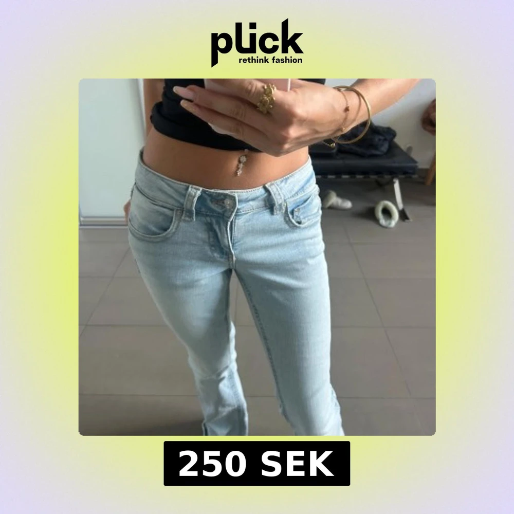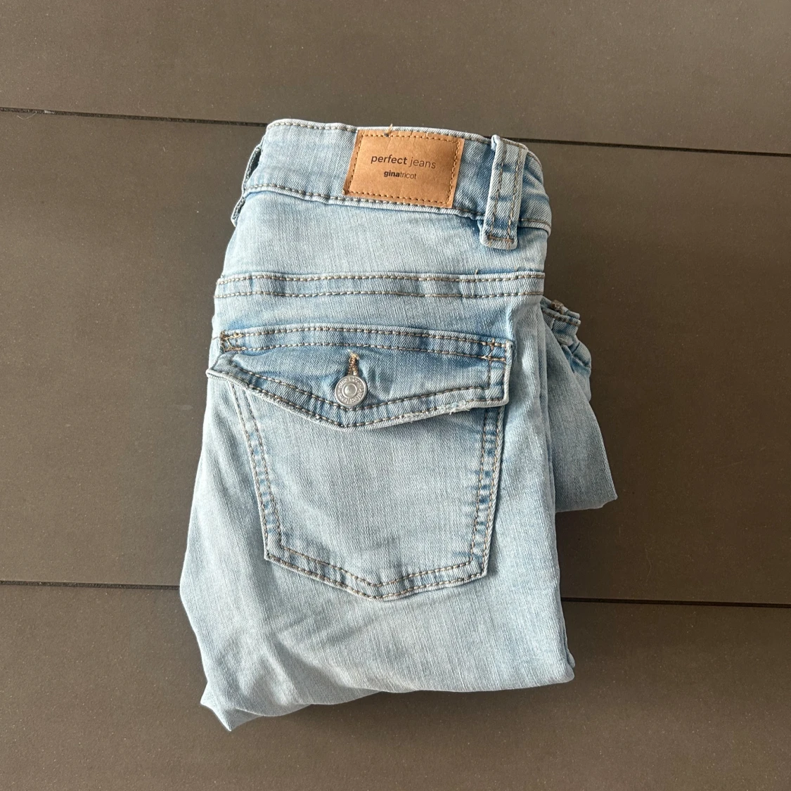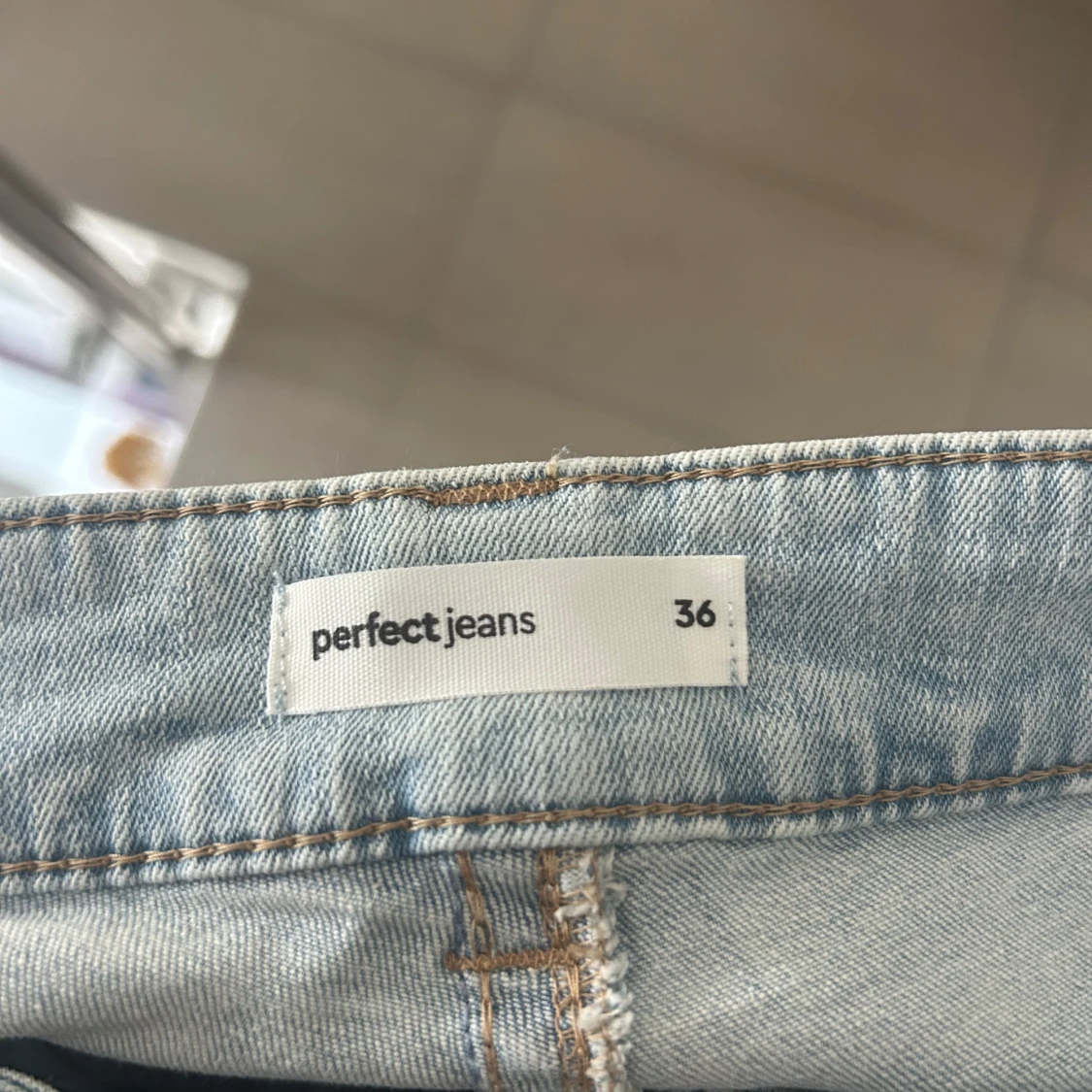 Säljer ett par ljusblå jeans från Perfect Jeans i storlek 36. Modellen har låg midja, klassiska fem fickor och raka ben. Jeansen är i mjukt denimtyg och har snygga detaljer som knappstängning och bakficka med lock.