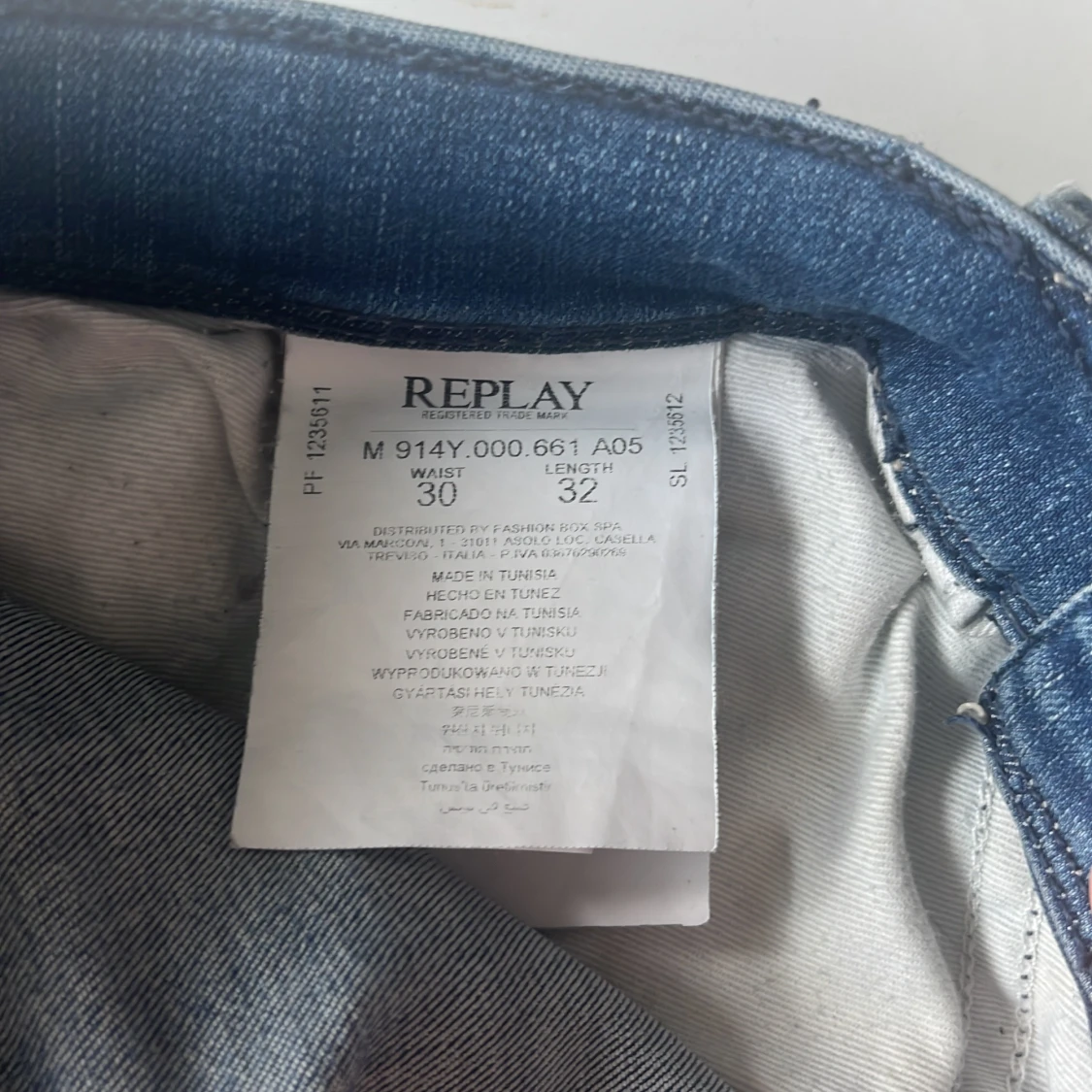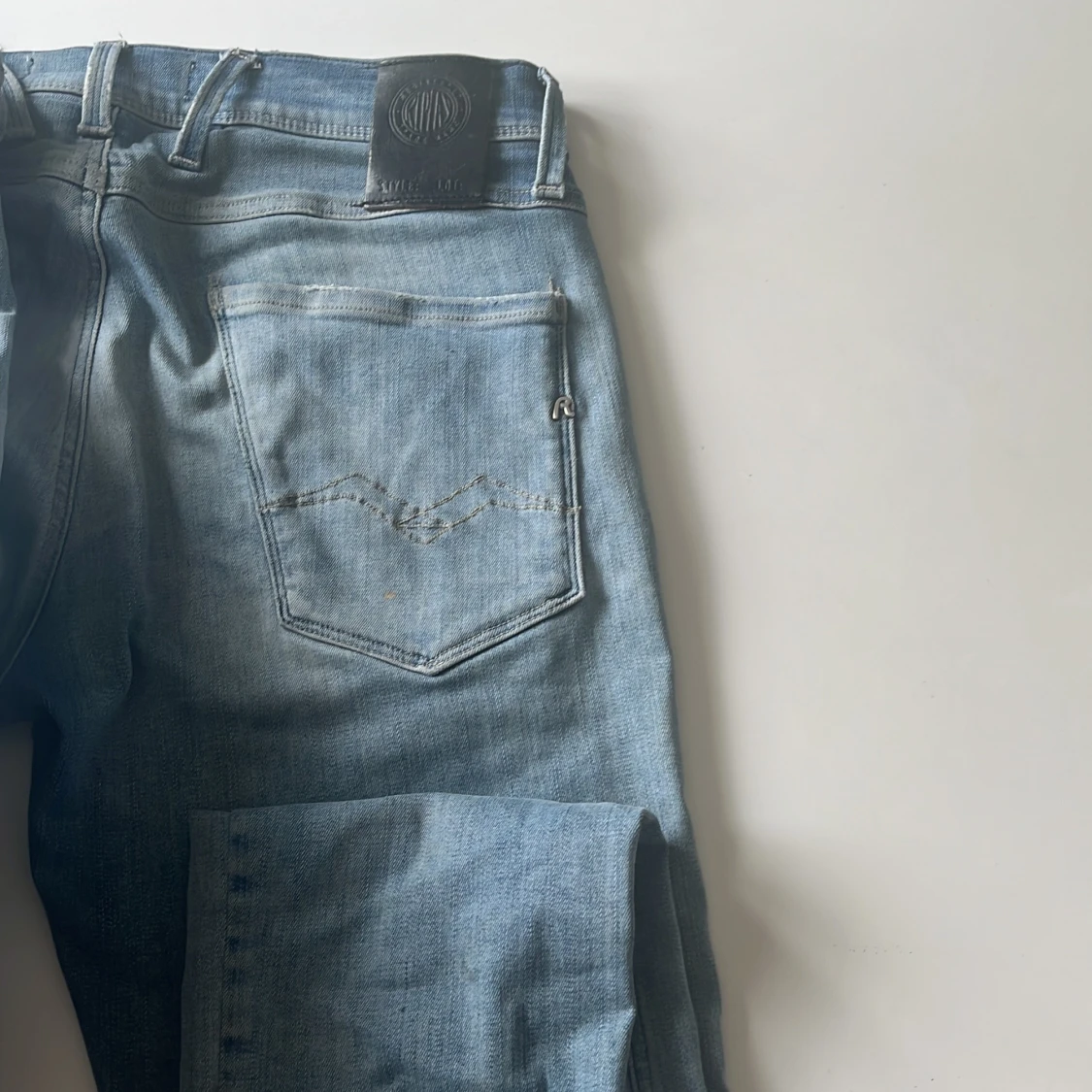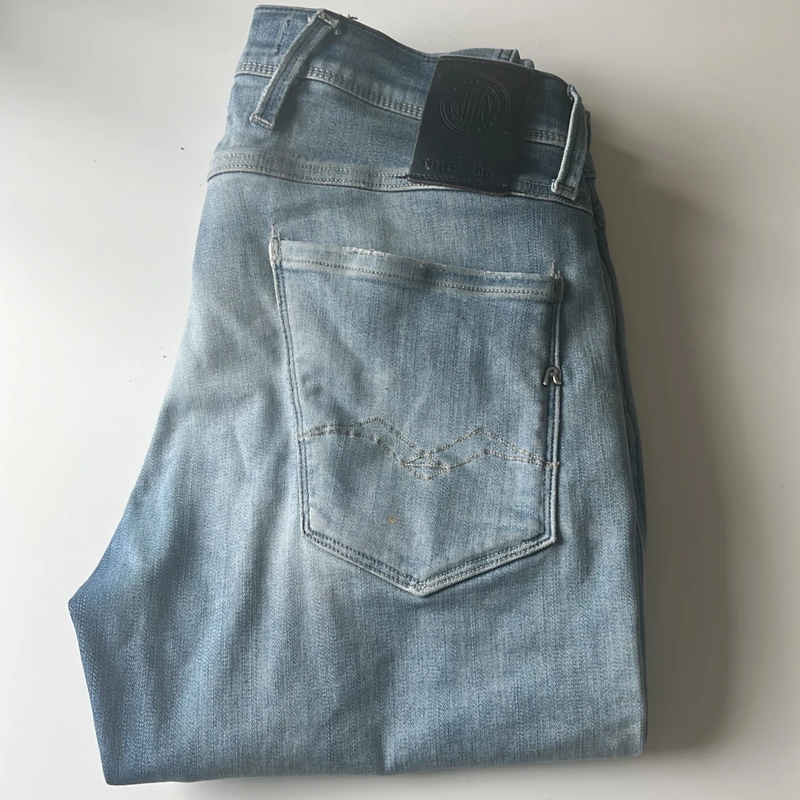 Snygga ljusblå jeans från Replay med lite ljusare fade. Väldigt sköna och bra skick. Färgen passar till det mesta, privat för fler bilder