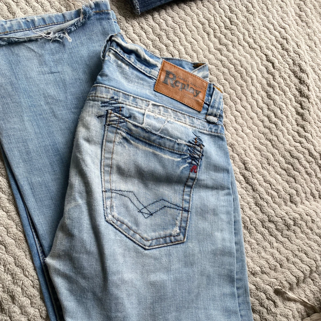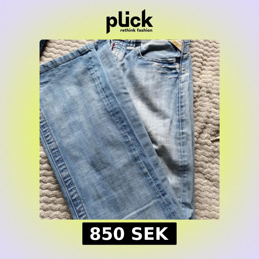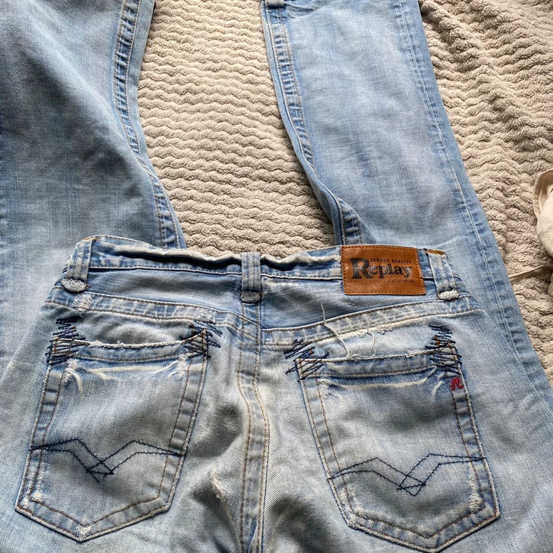 Säljer ett par ljusblå jeans med snygga detaljer på bakfickorna. Jeansen har normal passform och är Lågmidjade. Och bootcut.