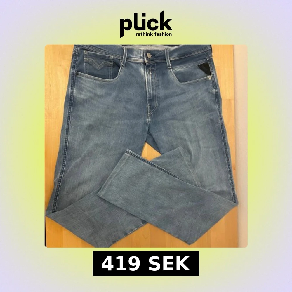 Säljer ett par ljusblå jeansbyxor från Replay i modellen Anbass Hyperflex. Byxorna är i storlek W34 L34 men sitter som L32. Skick 9.5/10. Hör av er vid minsta fundering😊priset går att diskutera.