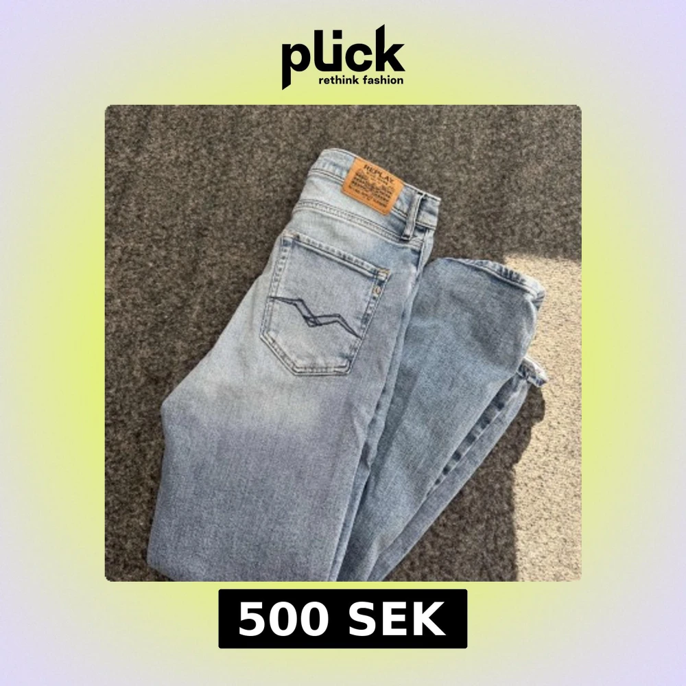 Snygga ljusblå jeans från Replay med klassisk femficksdesign och en bekväm passform. Jeansen har en diskret tvättad look och en läderpatch med Replay-logga på baksidan. Perfekta för en avslappnad stil. Knappt använda och är i storleken 14A H158 Cm. Hör av dig vid frågor eller funderingar ✅.