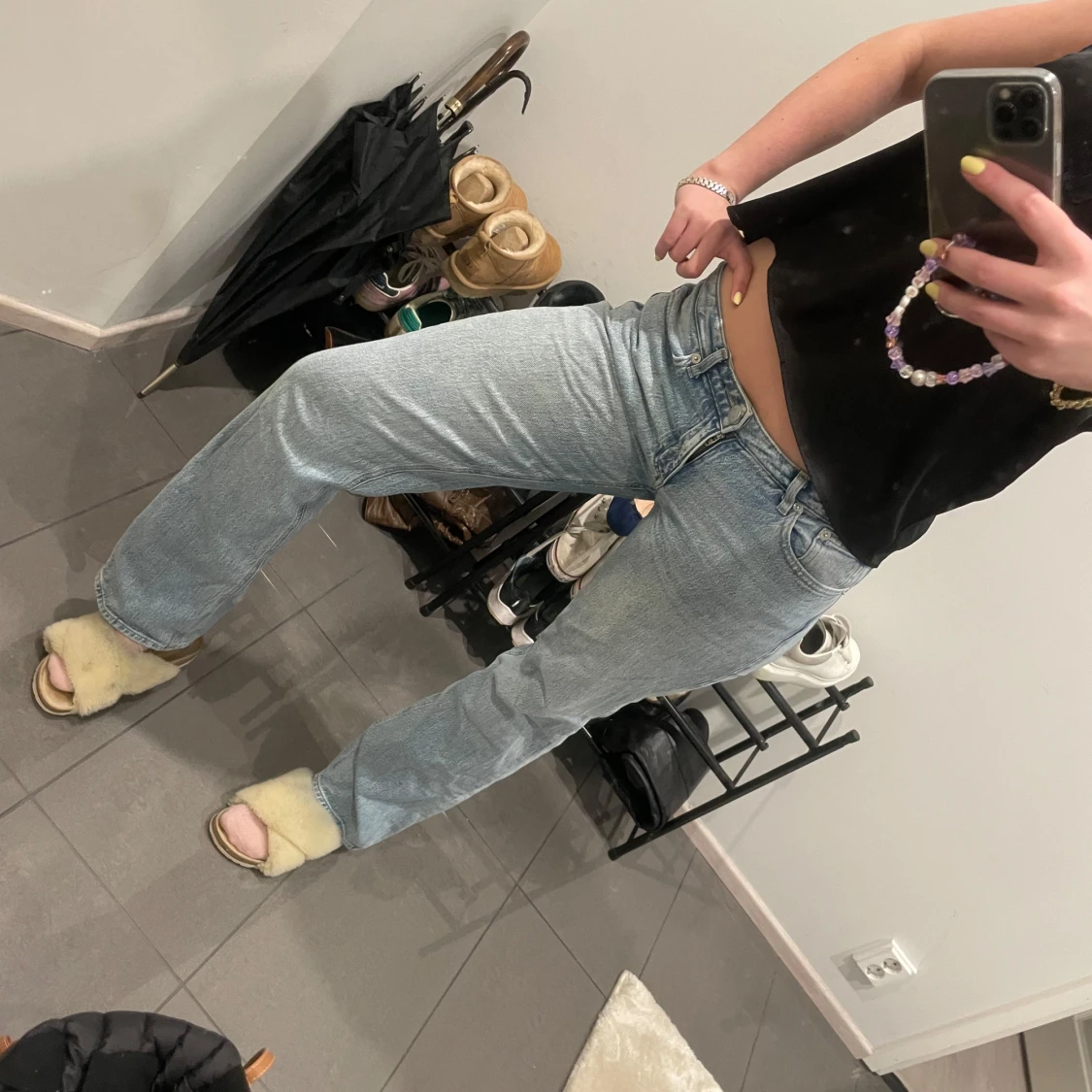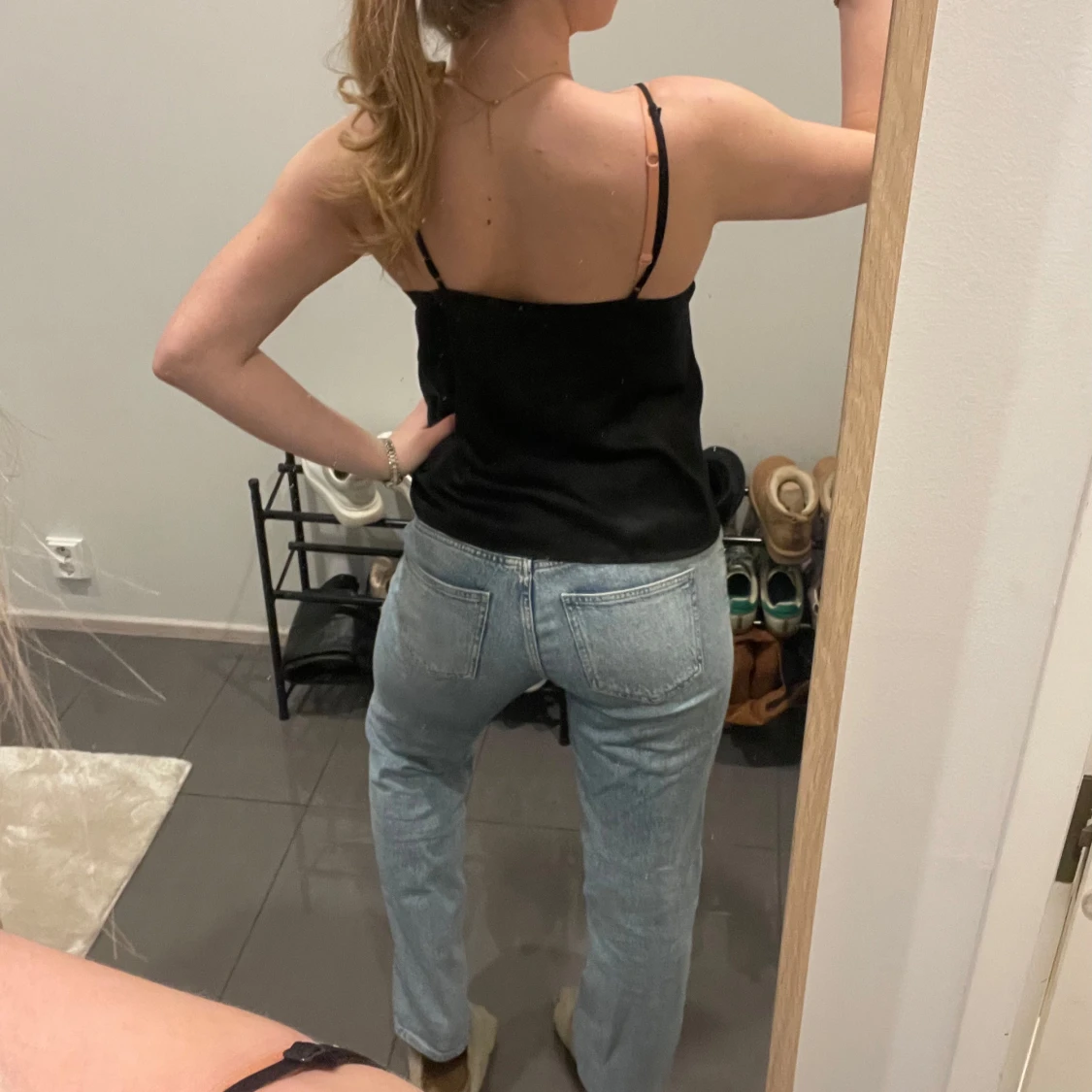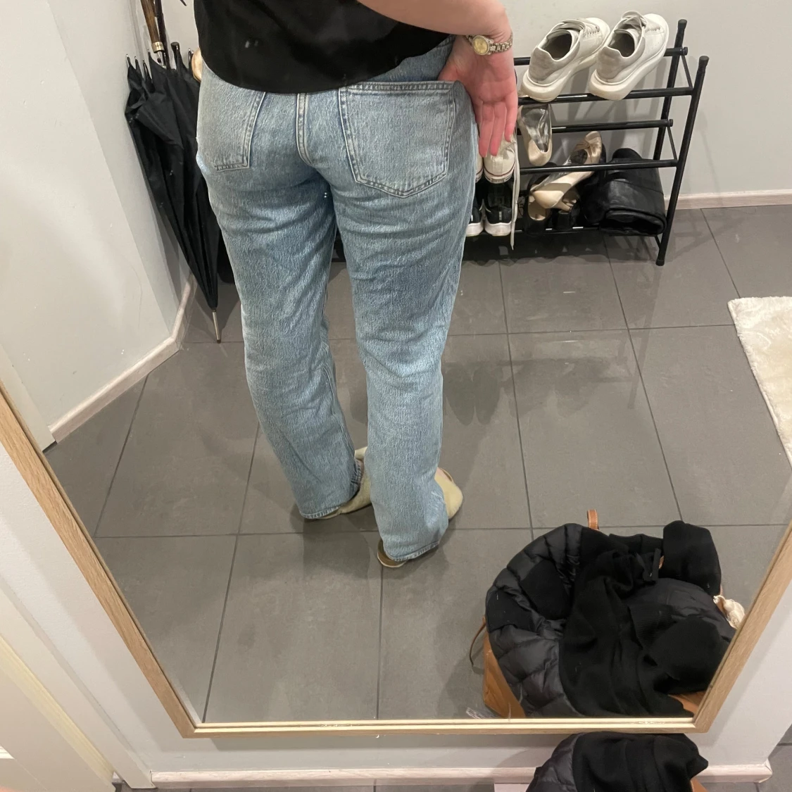Säljer ett par ljusblå jeans från Vero Moda. De har en klassisk straight passform och är perfekta för en avslappnad stil. Jeansen har en normal midja och är tillverkade i denim.