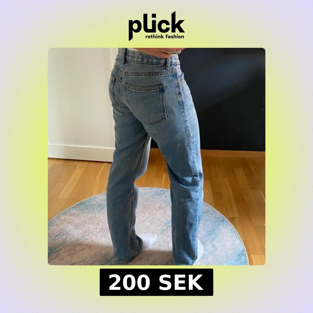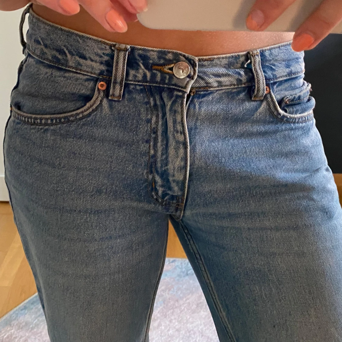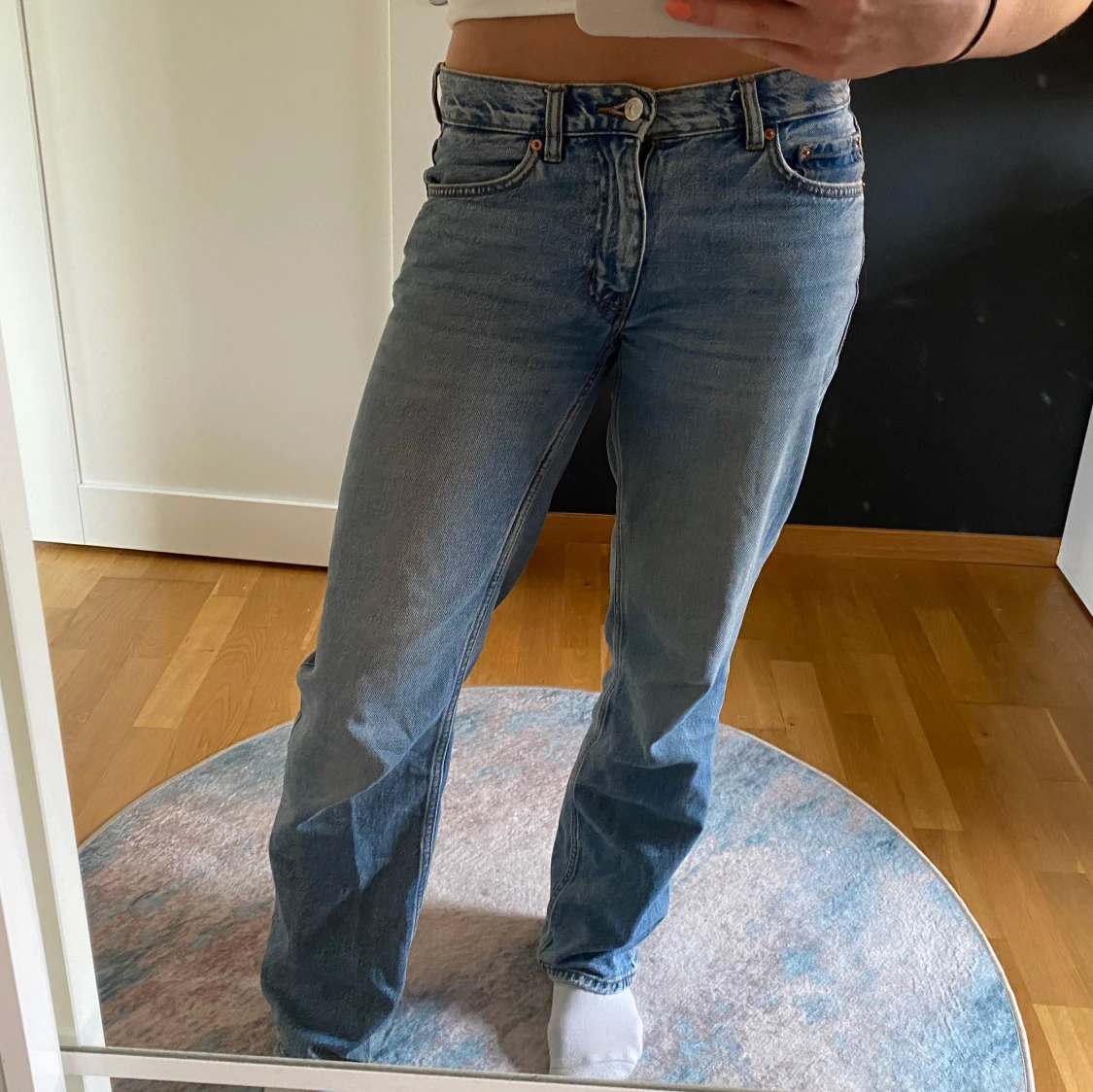 Klassiska jeans i ljusblå denim med raka ben och hög midja. Jeansen har fem fickor, bälteshällor och knappgylf. Perfekt vintagekänsla och snygg passform som funkar till allt. Skriv om funderingar!❣️
