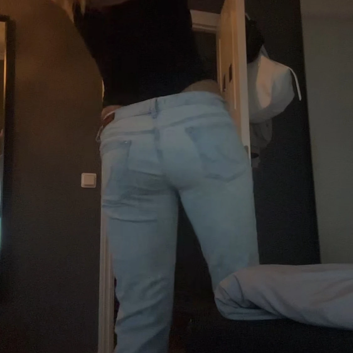 Säljer ett par ljusblå jeans med bootcut-modell och klassisk femficksdesign. Jeansen har låg midja och är tillverkade i mjukt denimtyg som ger en avslappnad vibe. Perfekta för dig som gillar en retroinspirerad look med lite utsvängda ben.