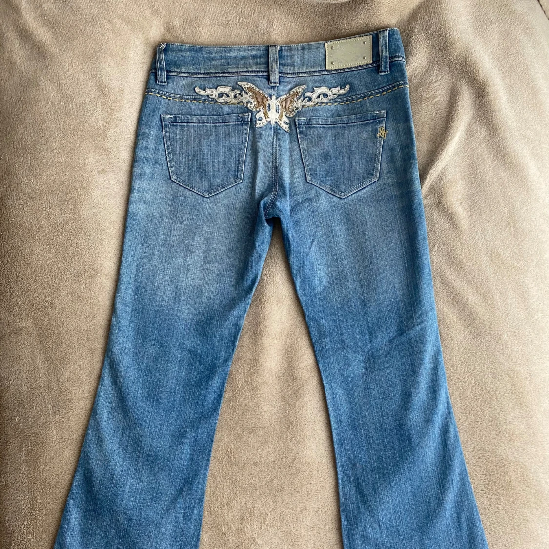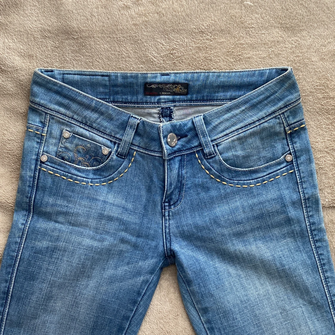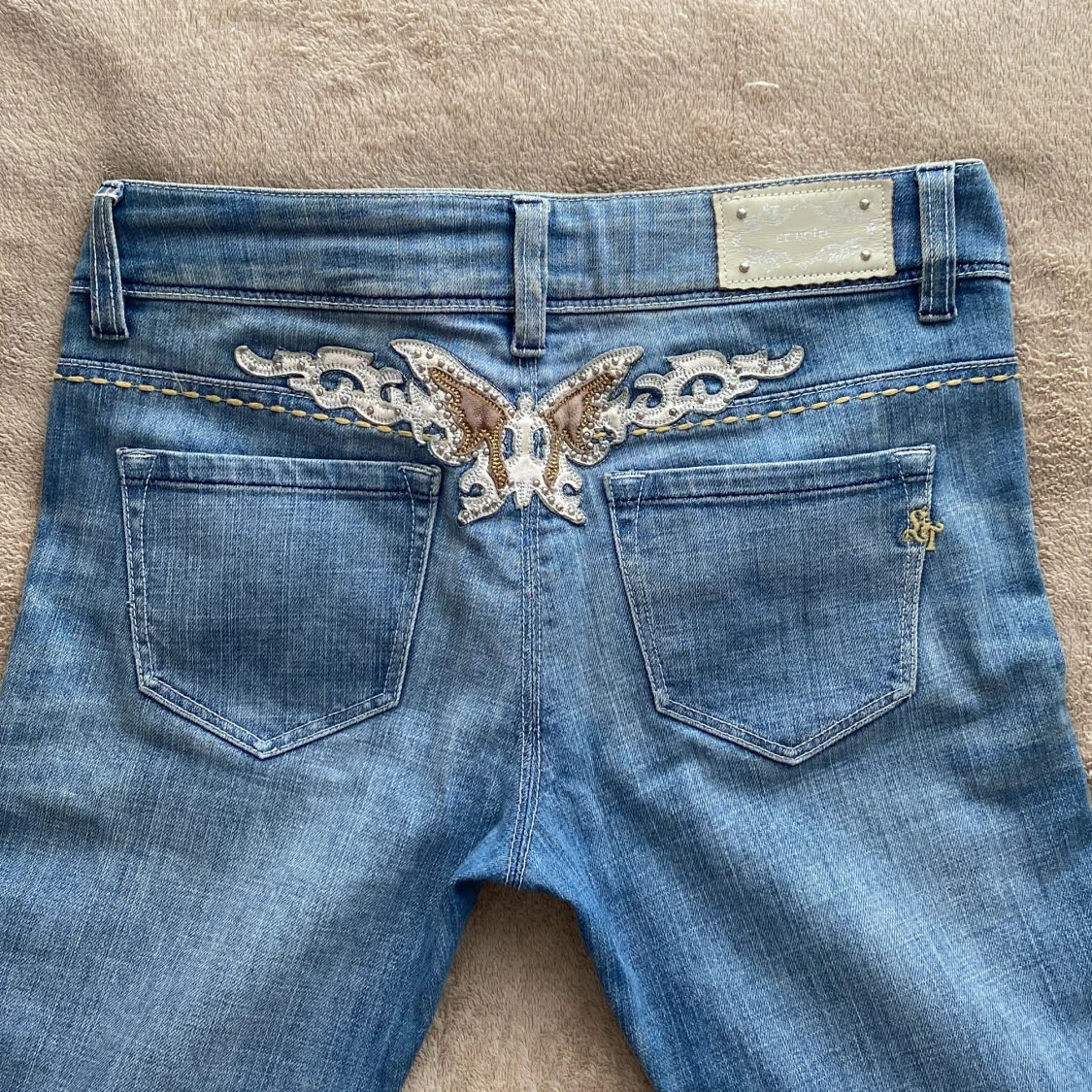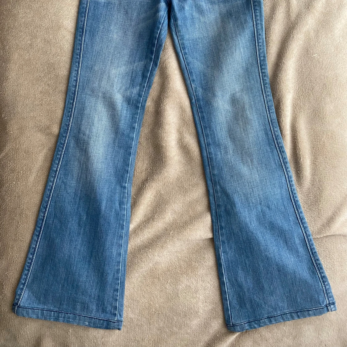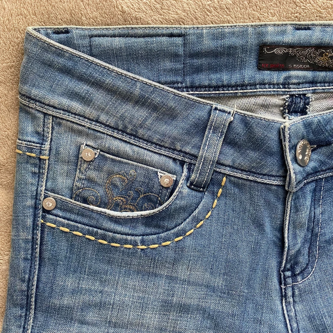 Så snygga jeans med coola detaljer💞 köpt second hand men är tyvärr för små för mig så har inte kommit till användning. Midja: 38cm Innerbenslängd: 76cm
