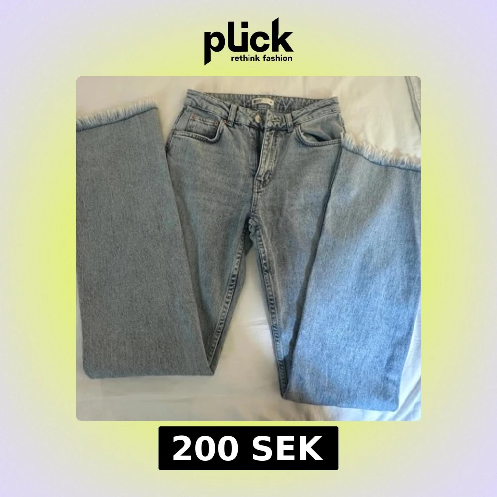 Ett par blå jeans med fransad kant. Jeansen har fyra fickor. Mycket gott skick, endast använd ett fåtal gånger. Passar perfekt till lite längre tjejer då benen är lite längre. (FRAKT INGÅR EJ)