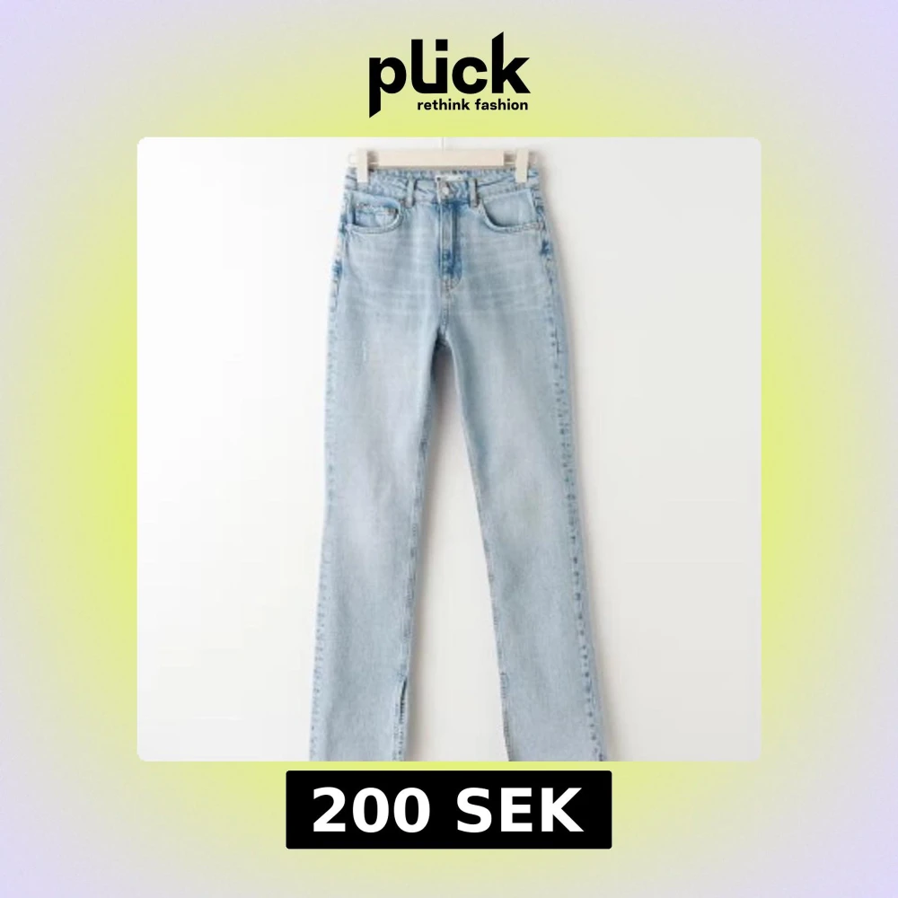 Ljusblå jeans, med slits och hög midja från Gina Tricot. Lite slitna nedtill, men inget som är jättetydligt. Dessa bilder är lånade från Ginas hemsida, kan visa egna bilder💓