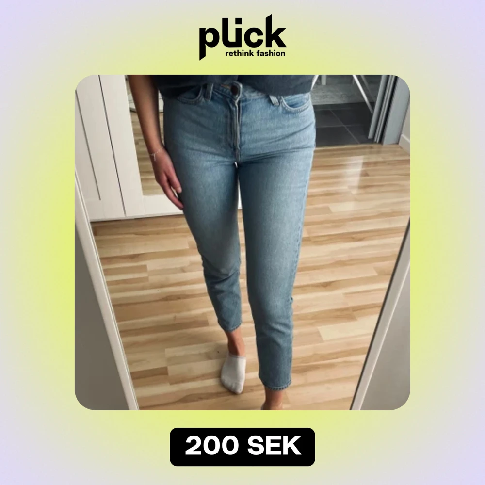 Ljusblå momjeans med hög midja från Lee. Dragkedjan är trasig och ”hoppar ur” längst ner, går dock att haka i och använda dragkedjan ändå.