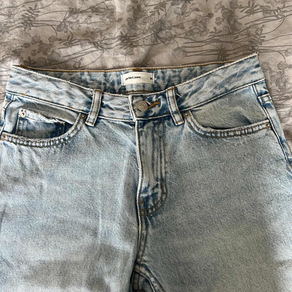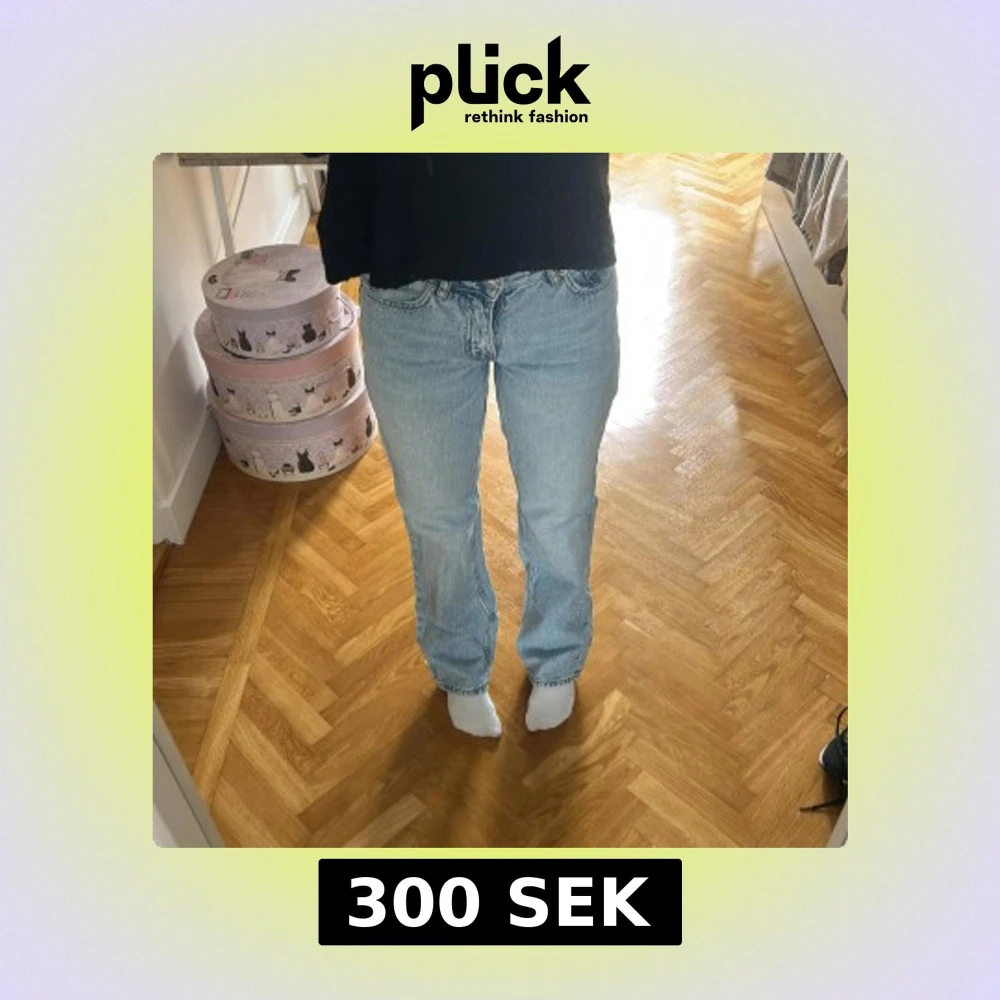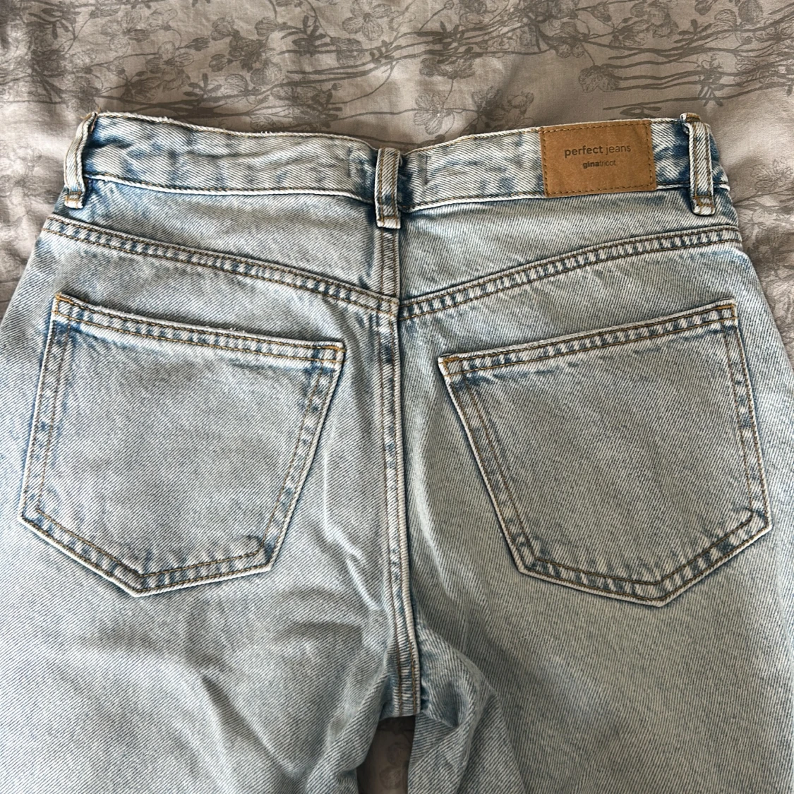 Säljer ett par ljusblå jeans från Gina tricot i klassisk femficksmodell. Jeansen har raka ben, hög midja och snygg tvättad denimlook. Perfekta för dig som gillar en avslappnad men ändå stilren vibe.