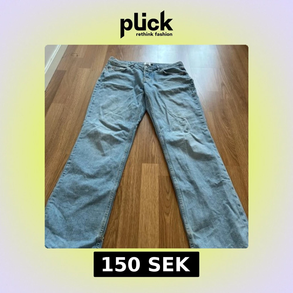 Säljer ett par klassiska ljusblå jeansbyxor med rak passform. Byxorna har fem fickor, bälteshällor och stängs med dragkedja och knapp. Perfekta för en avslappnad stil och passar till det mesta.
