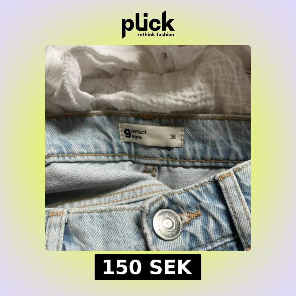 Säljer ett par ljusblå jeansbyxor från Gina med slitningar på båda benen.