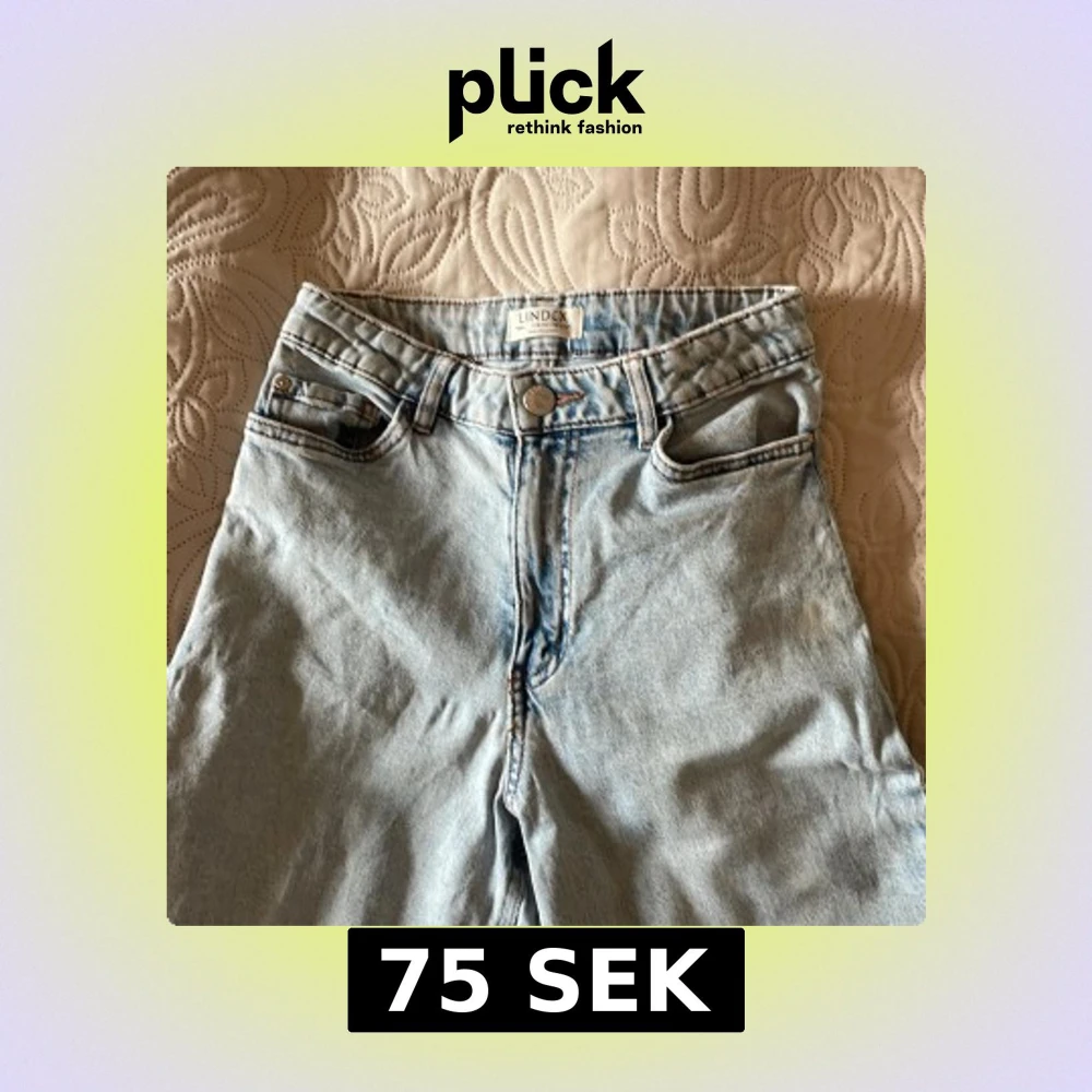 Säljer ett par ljusblå jeansbyxor från Lindex i storlek 152. Byxorna har en högmidjad design med vida ben och klassiska femficksdetaljer. Perfekta för en avslappnad stil. Mjuk i tyget.