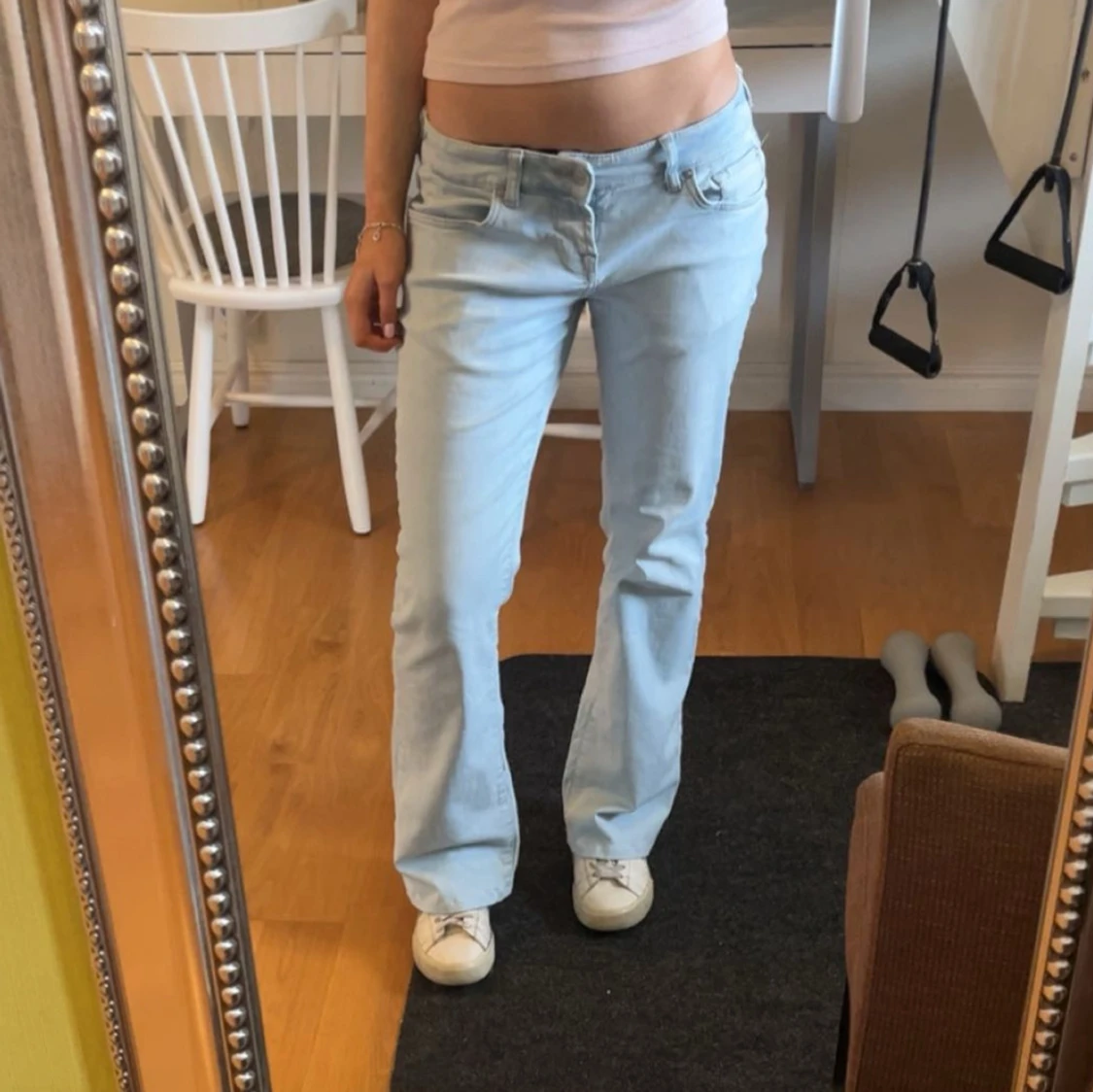 Säljer ett par ljusblå jeansbyxor från LTB i färgen Blue Addicted. Byxorna är i modellen Roxy och i storlek 27/32💞. De har en liten orange prick på ena benet som knappt syns som visas på tredje bilden💞 skriv om du har fler frågor!
