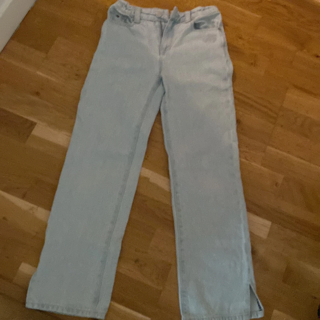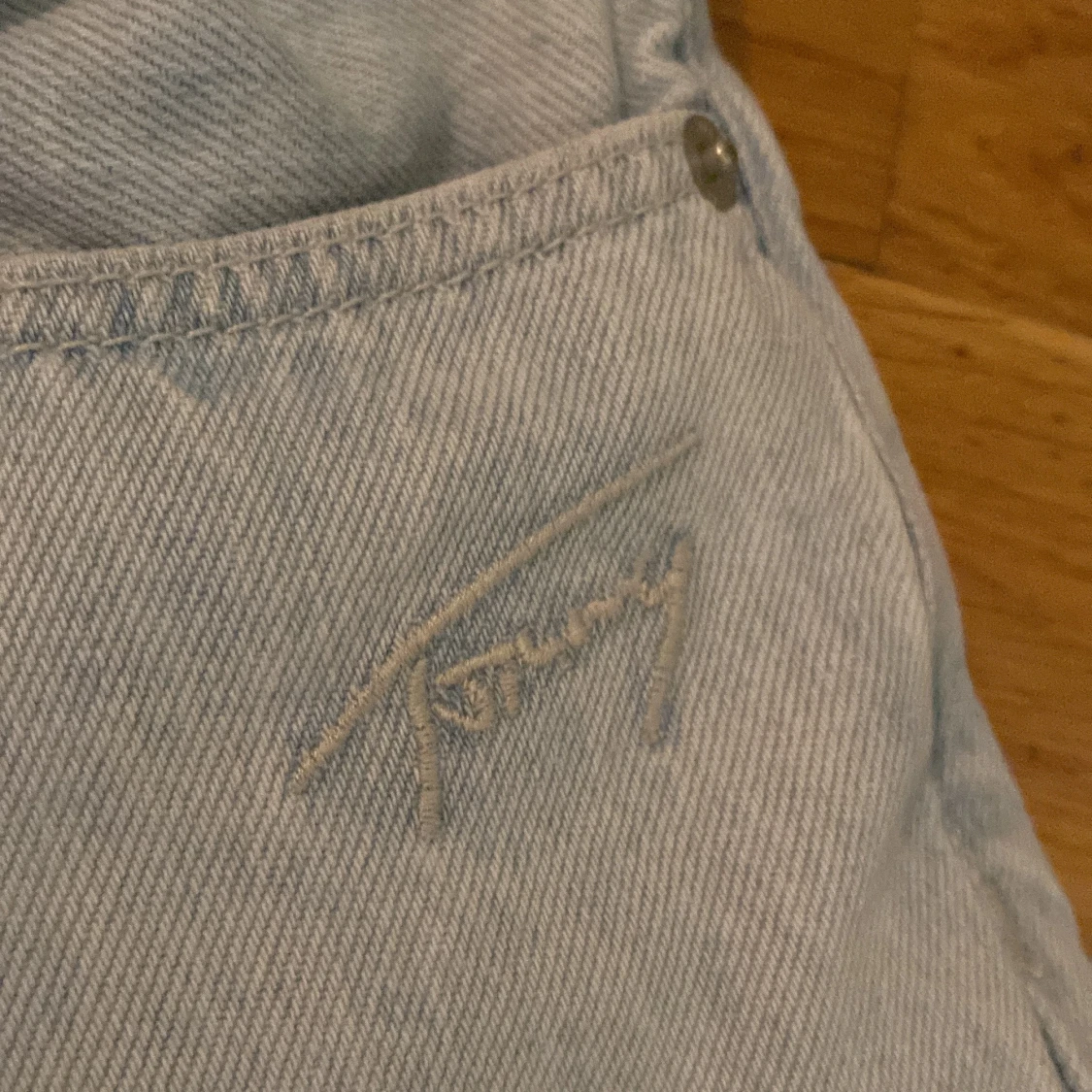 Säljer ett par ljusblå jeans från Tommy Hilfiger med broderad logga vid fickan💗