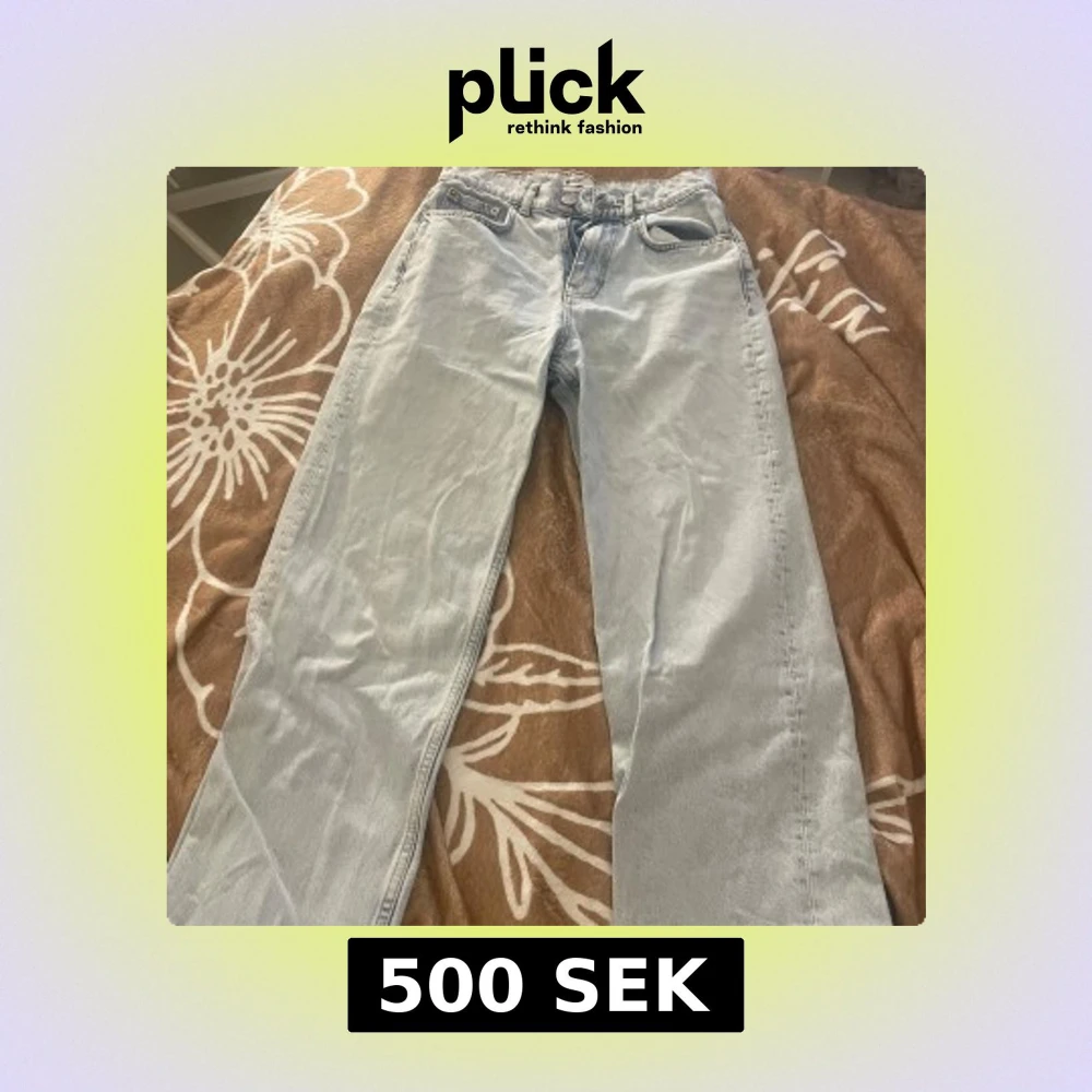 Säljer ett par ljusblå jeans från Gina tricot i bra skick, nypris var ca 800kr