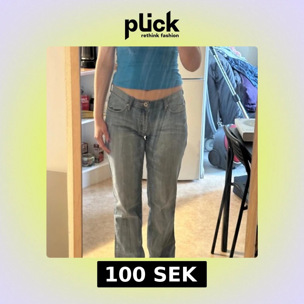 Säljer ett par klassiska ljusblå jeansbyxor med normal passform och raka ben. Byxorna har fem fickor, knapp och dragkedja framtill samt diskreta slitningar för en avslappnad look. Perfekta till vardags och lätta att matcha med olika toppar.