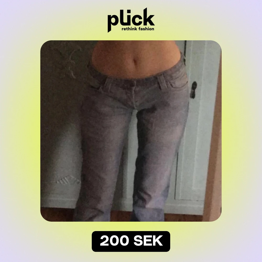 Lågmidjade ljusblå bootcut jeans, märke fcuk. 38cm midjemått, grenhöjd 18cm, 83cm innerbenslängd (jag är 172cm) 25cm över låret