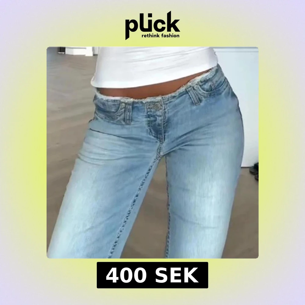 Snygga ljusblå jeans med låg midja och unik spetskant upptill. Dom är ifrån Nelly och inprincip oanvända, pga har många liknande