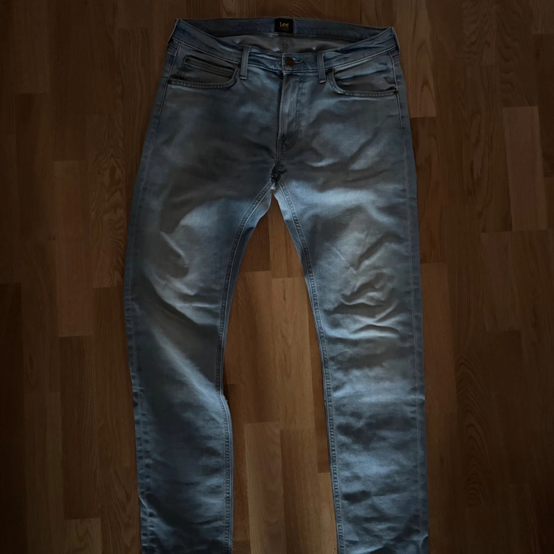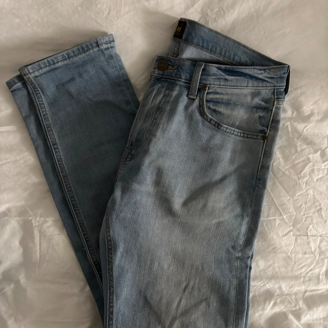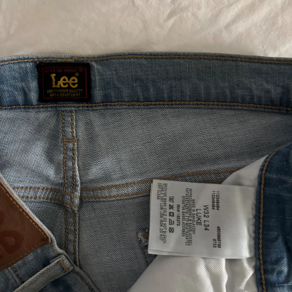 Säljer ett par ljusblå Lee Luke jeans med klassisk femficksdesign och snyggt detaljer. Jeansen har normal passform och raka ben, tillverkade i mjukt bomullstyg med lite stretch för extra komfort. Har inga defekter.