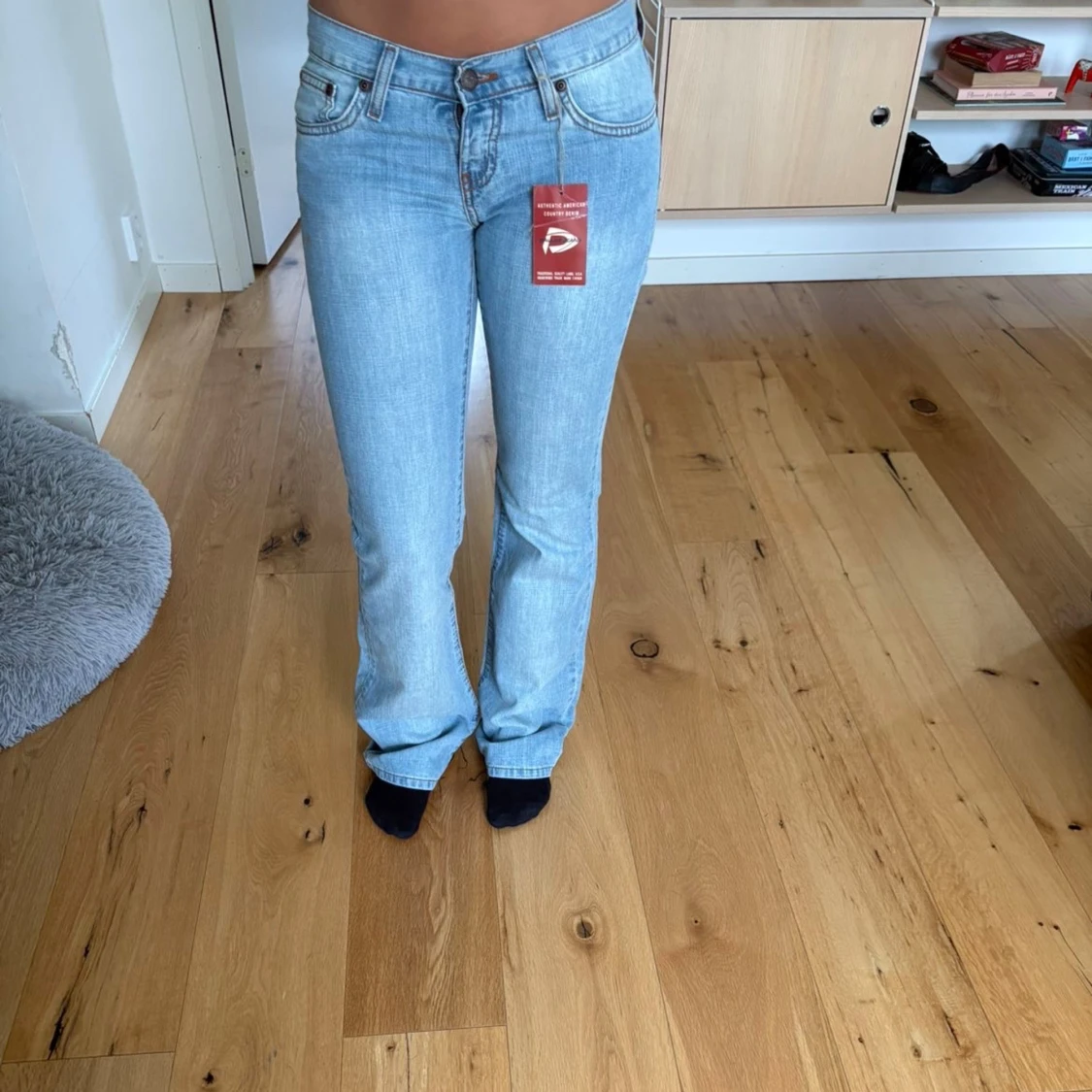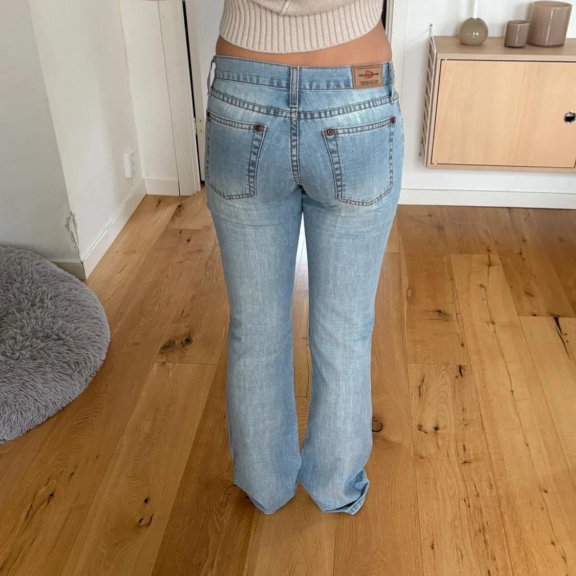 Snygga ljusblå Levis 527 jeans med bootcut passform och låg midja. Köpt från en second hand sida och säljer då dem är för små för mig!