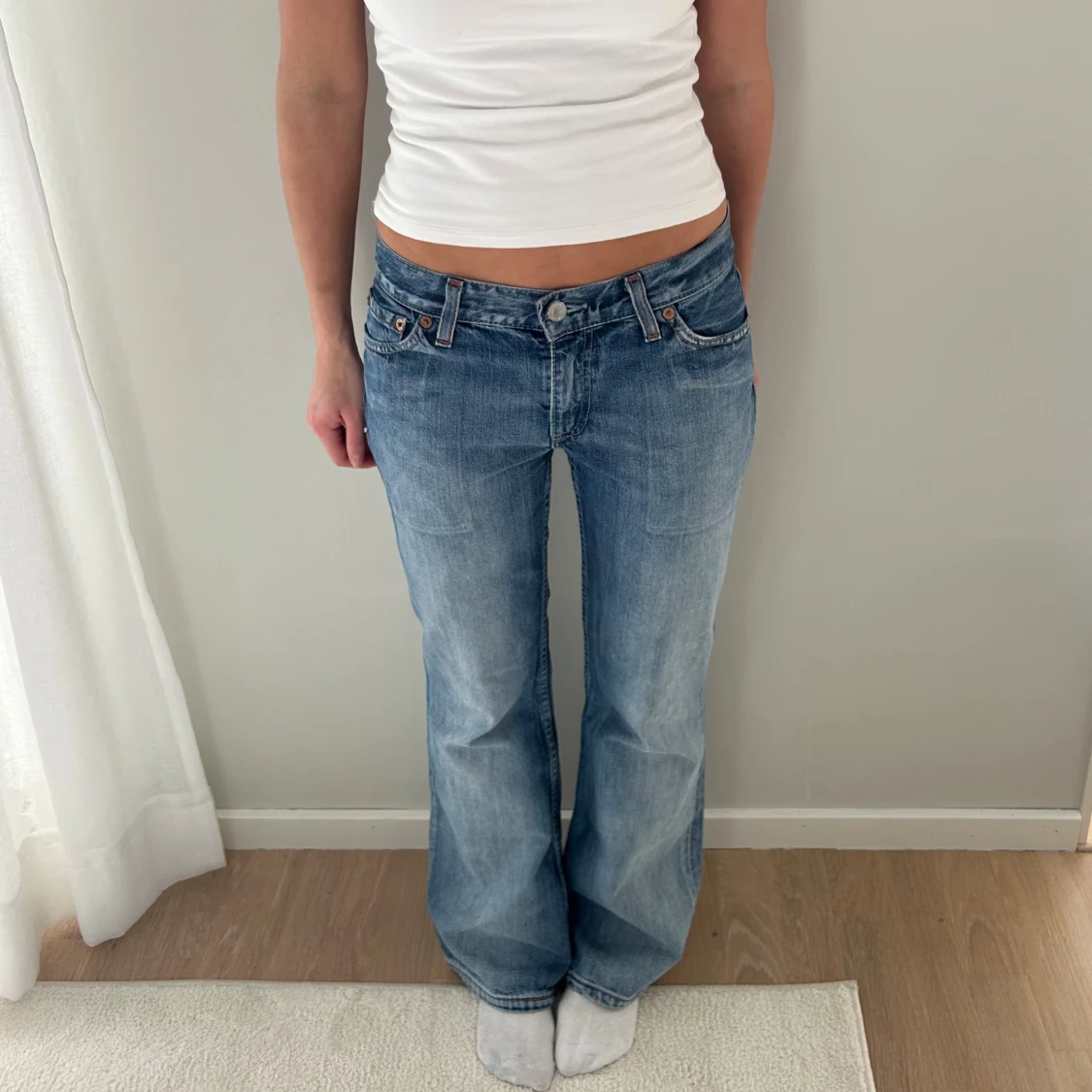 Ljusblå lågmidjade Levis Jeans i storlek XS. Midja: 37x2 cm innerben: 74 cm