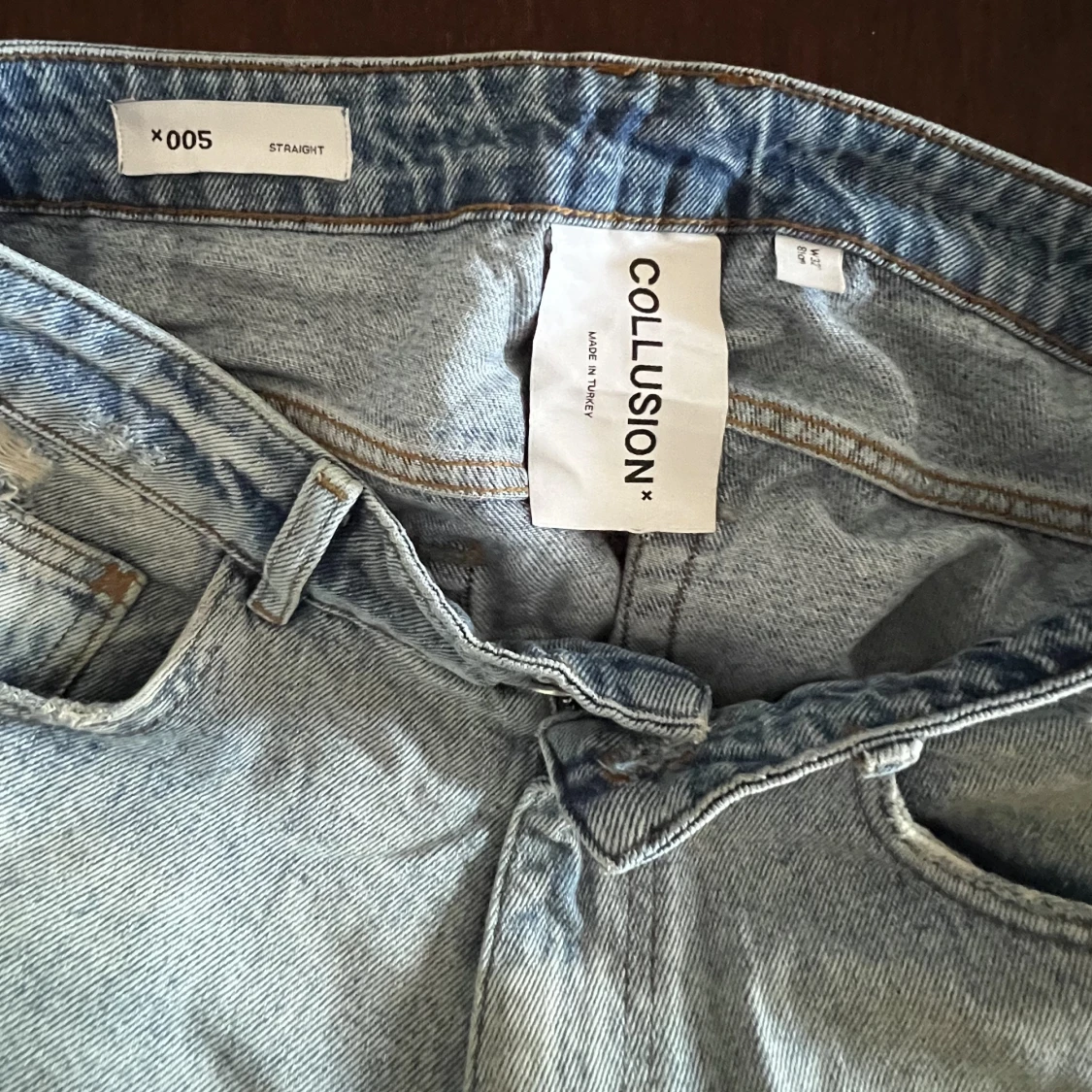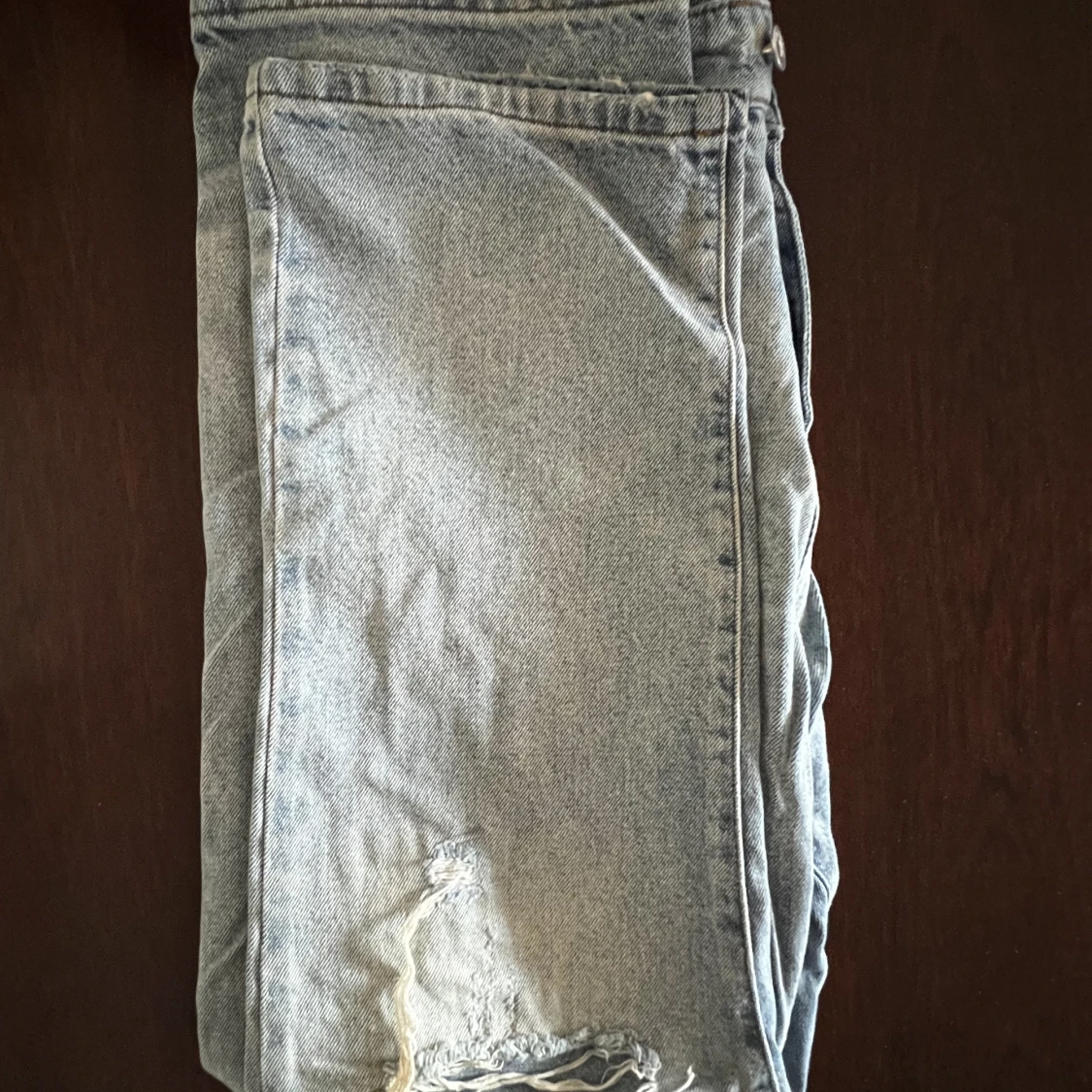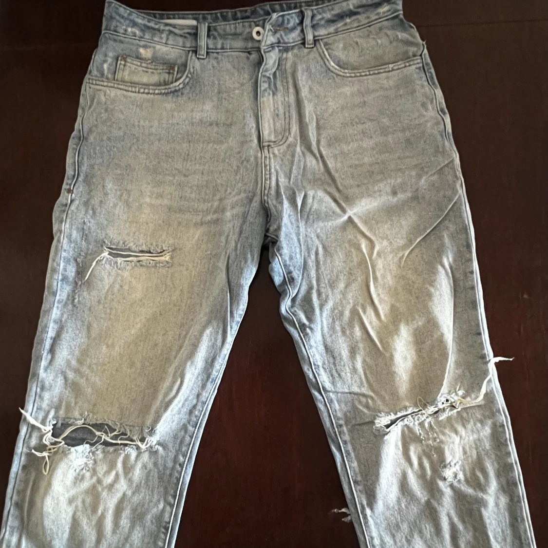 Köpta på asos för runt 600. Stora hål vid båda knä. Model straight men rätt så baggy i benöppningarna. Använda mkt under en period men passar ej längre. Pm för frågor!:)