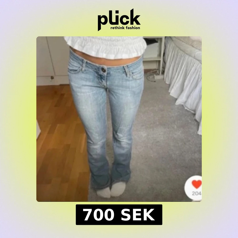 Så snygga ljusblå low waist jeans. Säljer då de var försmå för mig, köpte på plick.❤️❤️ passar 160-170. Midjemått: 36cm. Innerbenslängd: 78cm