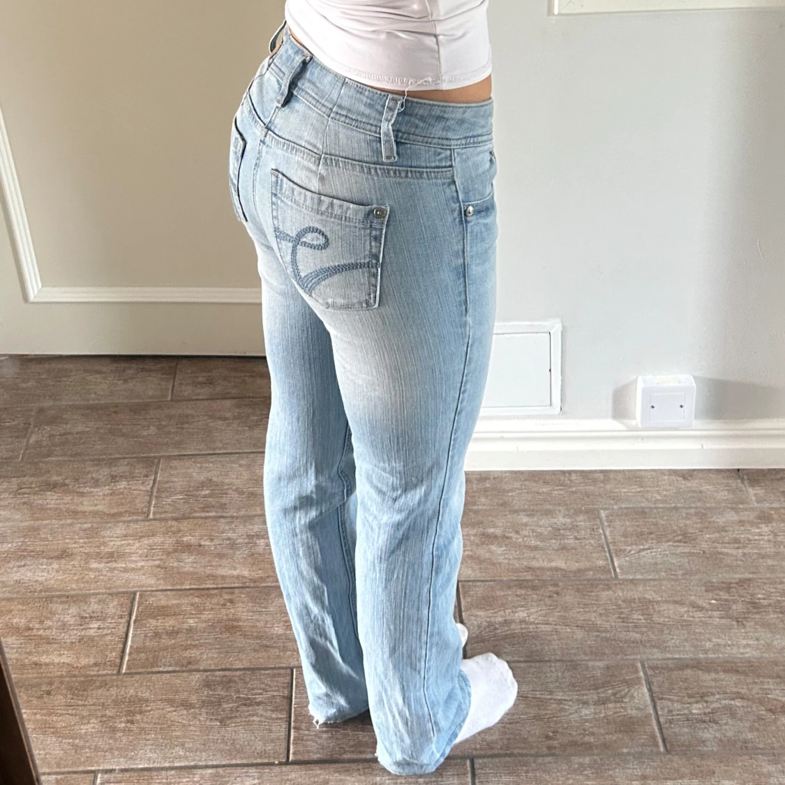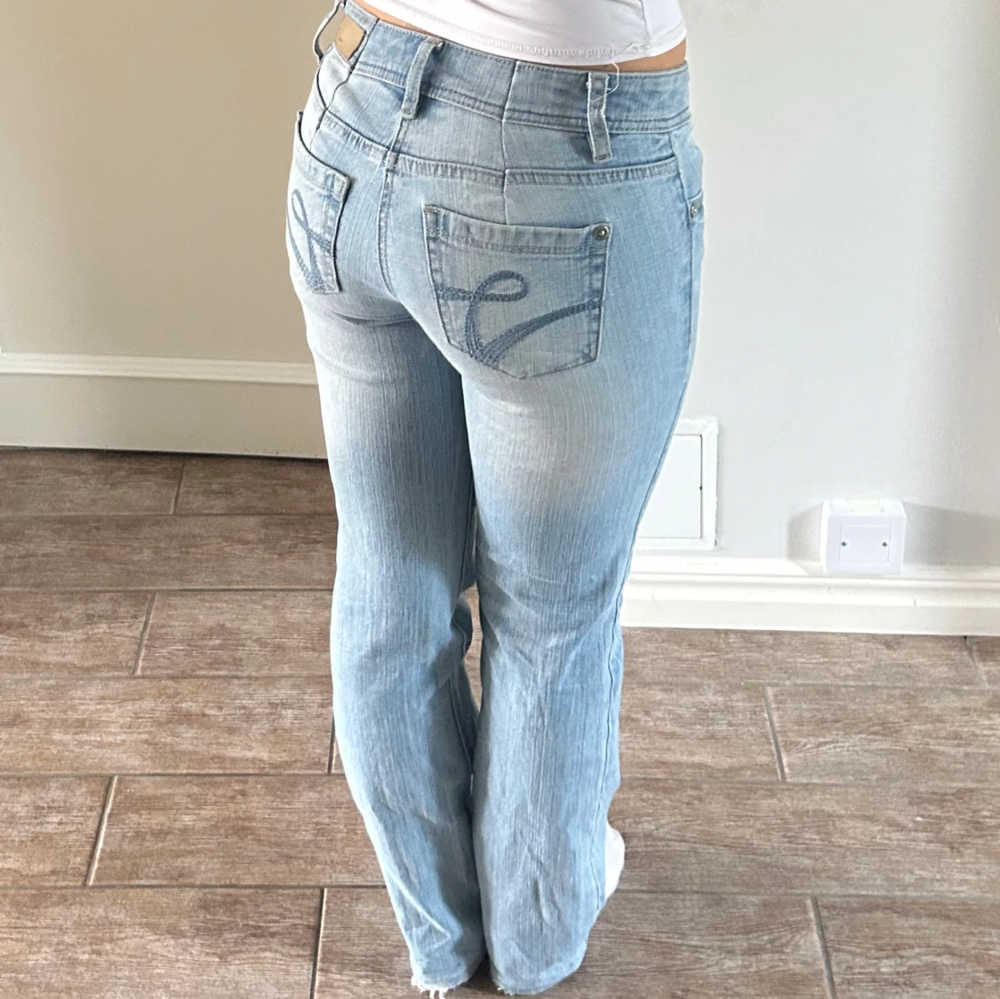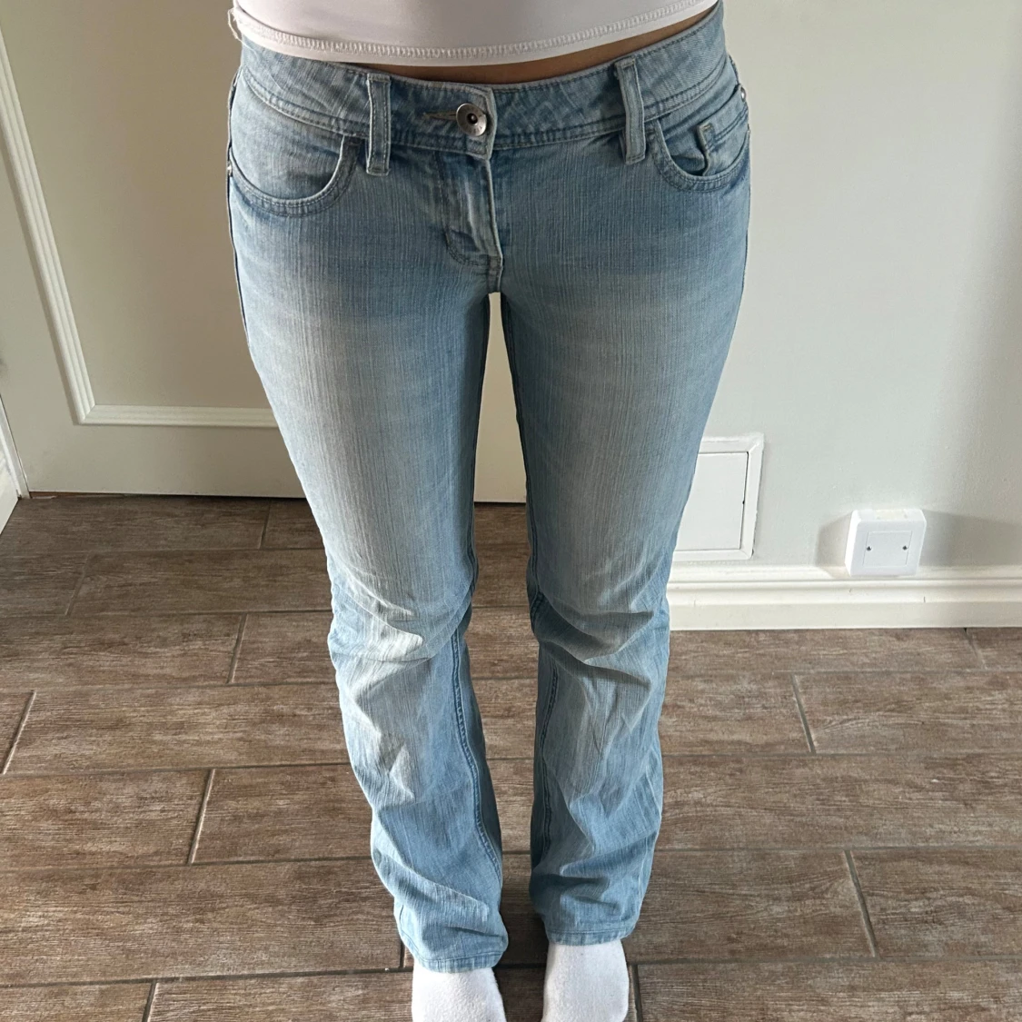 Jättesnygga ljusblå lowrise vintage jeans med fina detaljer från Esprit, knappt använda, nypris 990kr