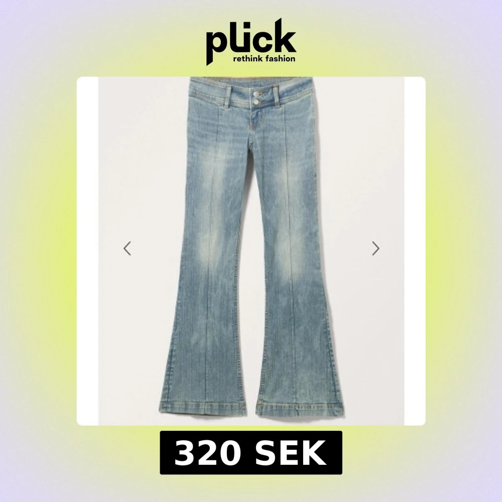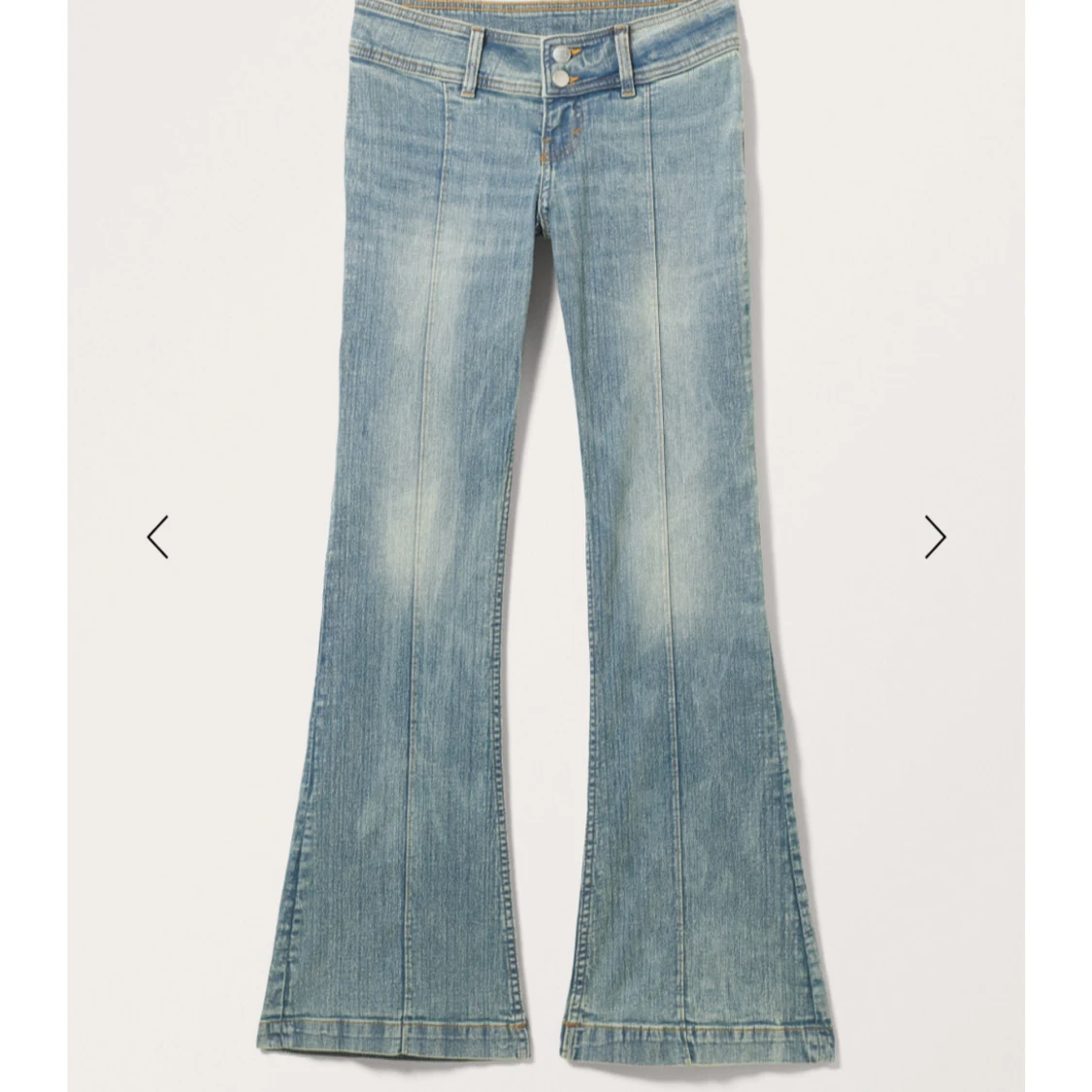 Snygga ljusblå bootcut jeans, lågmidjade och markerade pressveck framtill. Köpt på monki för 500 kr. Storlek 24/32, Bra skick och skriv till mig för bilder💕pris kan diskuteras