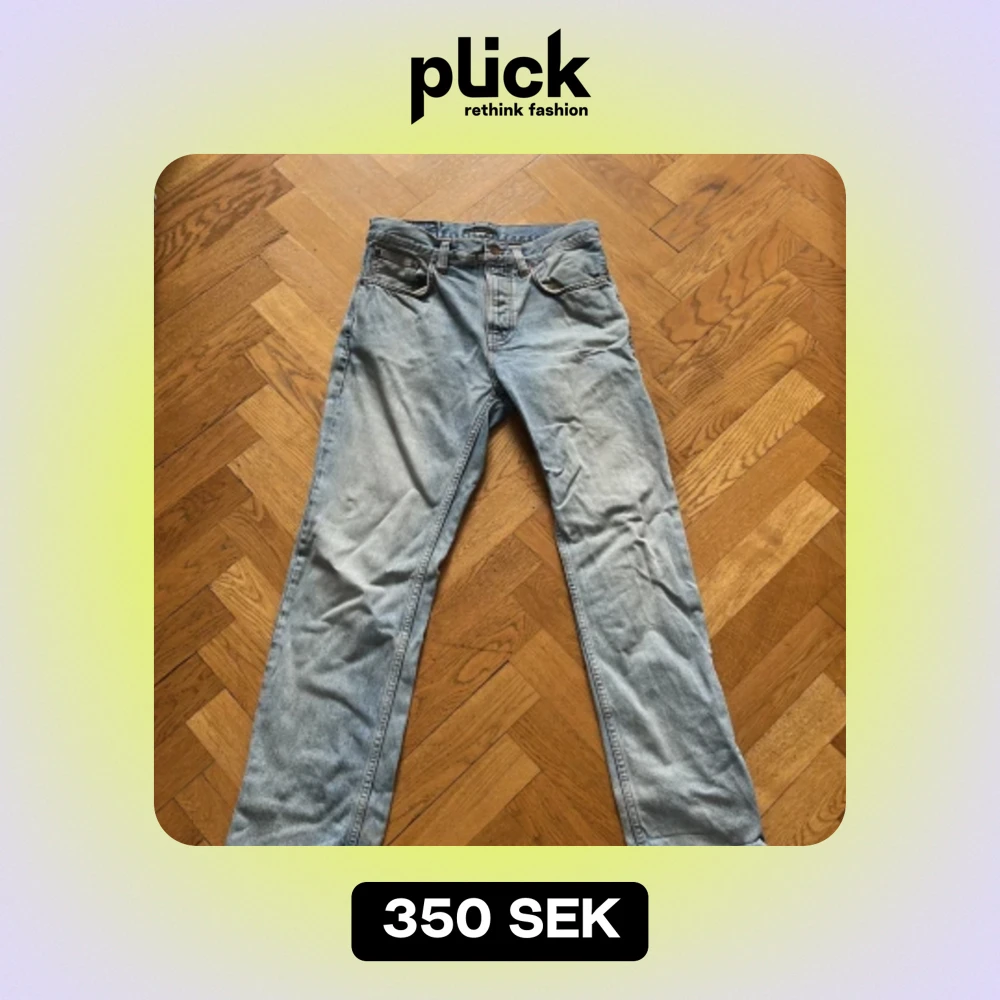 Ljusblå Nudie Jeans. Stkl 29 i midjan och 30 i längden. Lite lösare passform.
