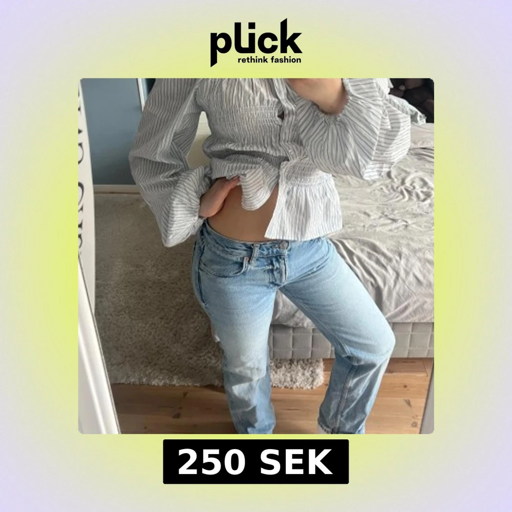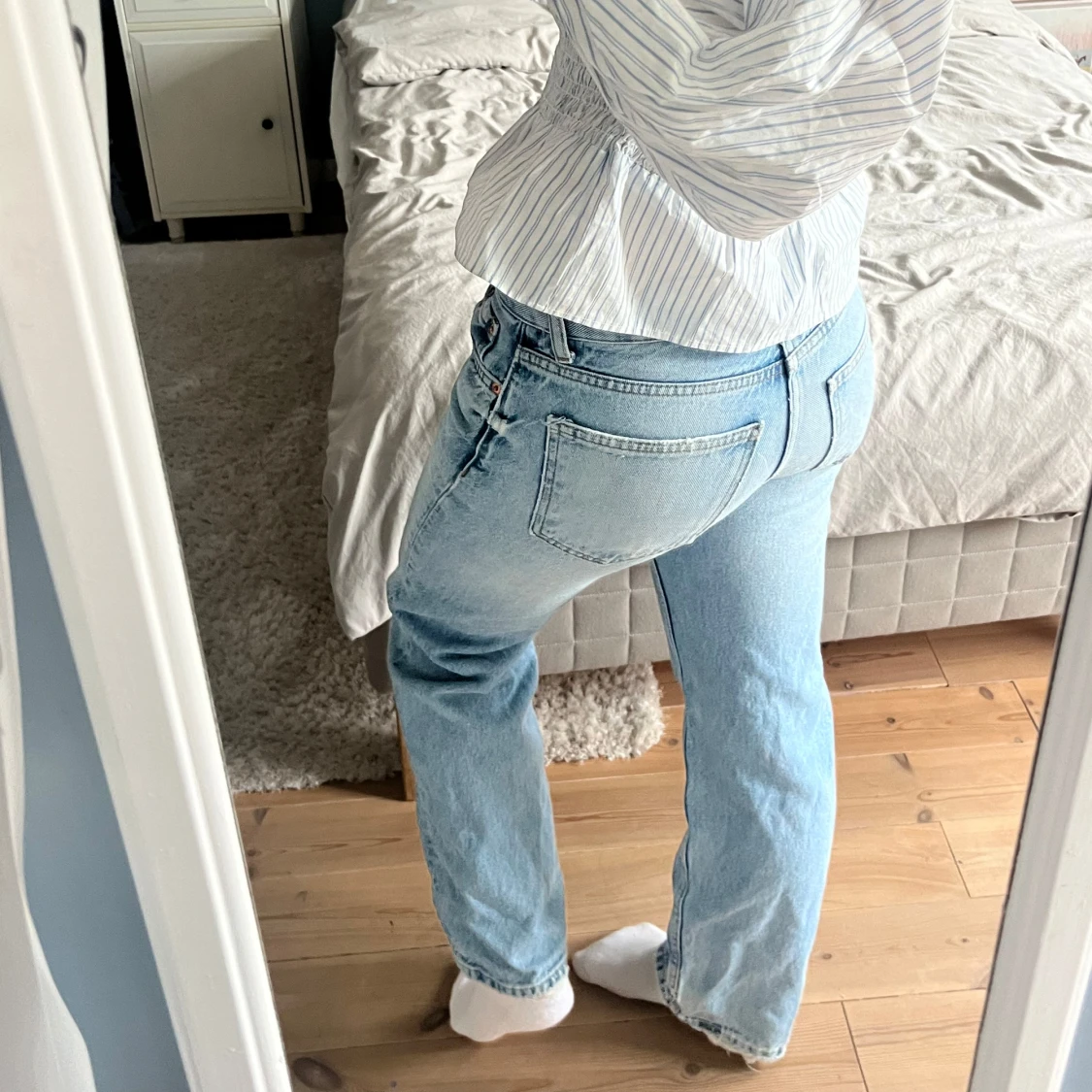 ljusblå jeans med vid/rak passform och klassisk femficksdesign. Jeansen stängs med knapp och dragkedja. Perfekta för en avslappnad och stilren look.