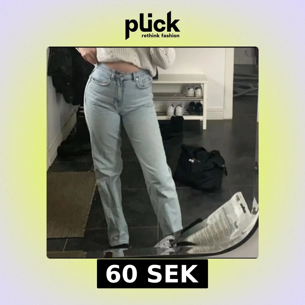 Säljer ett par ljusblå jeans med rak passform och hög midja. Använda så har lite skavanker med fint helhets intryck. Skulle säga att de är mer som en 34-36.