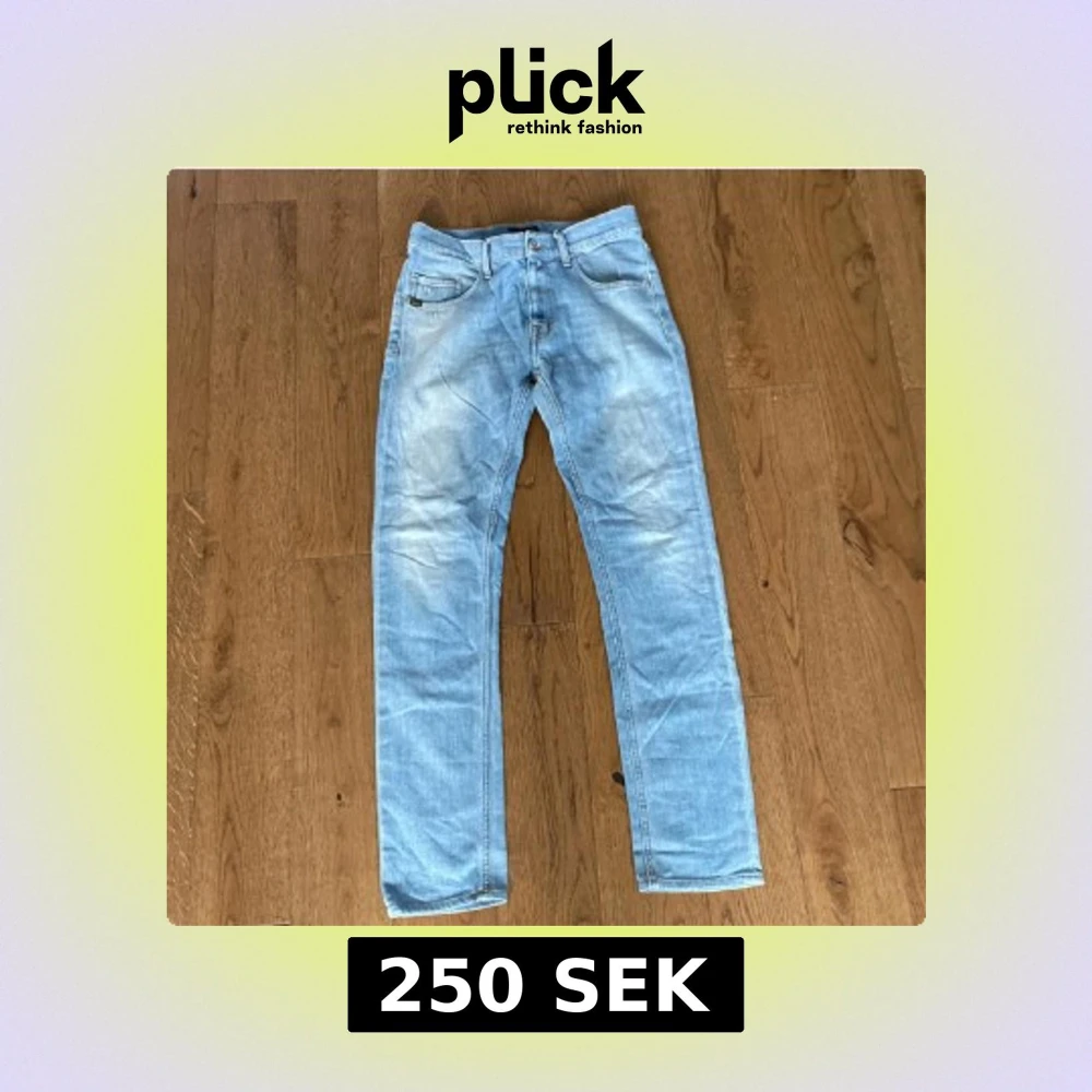 Säljer ett par ljusblå jeans med klassisk femficksdesign och raka ben. Jeansen har normal passform och är tillverkade i denim. Perfekta för en avslappnad och stilren look.