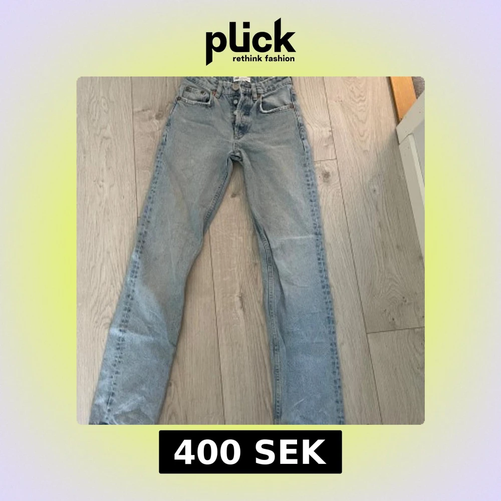 Säljer ett par ljusblå jeans från Zara i straight, mid rise modell.