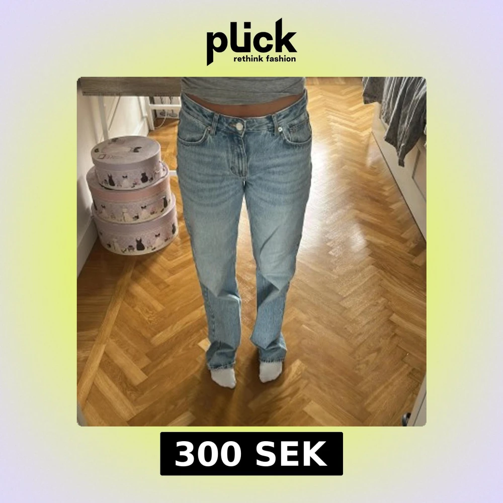 Säljer ett par ljusblå jeans från Pull&Bear i rak modell. Jeansen har klassisk femficksdesign, bälteshällor och knappgylf. Snygg tvättad denim med normal passform och hög midja. Perfekta till sneakers och en enkel t-shirt. Endast använda ett fåtal gånger och säljs endast för dem är för långa på mig.