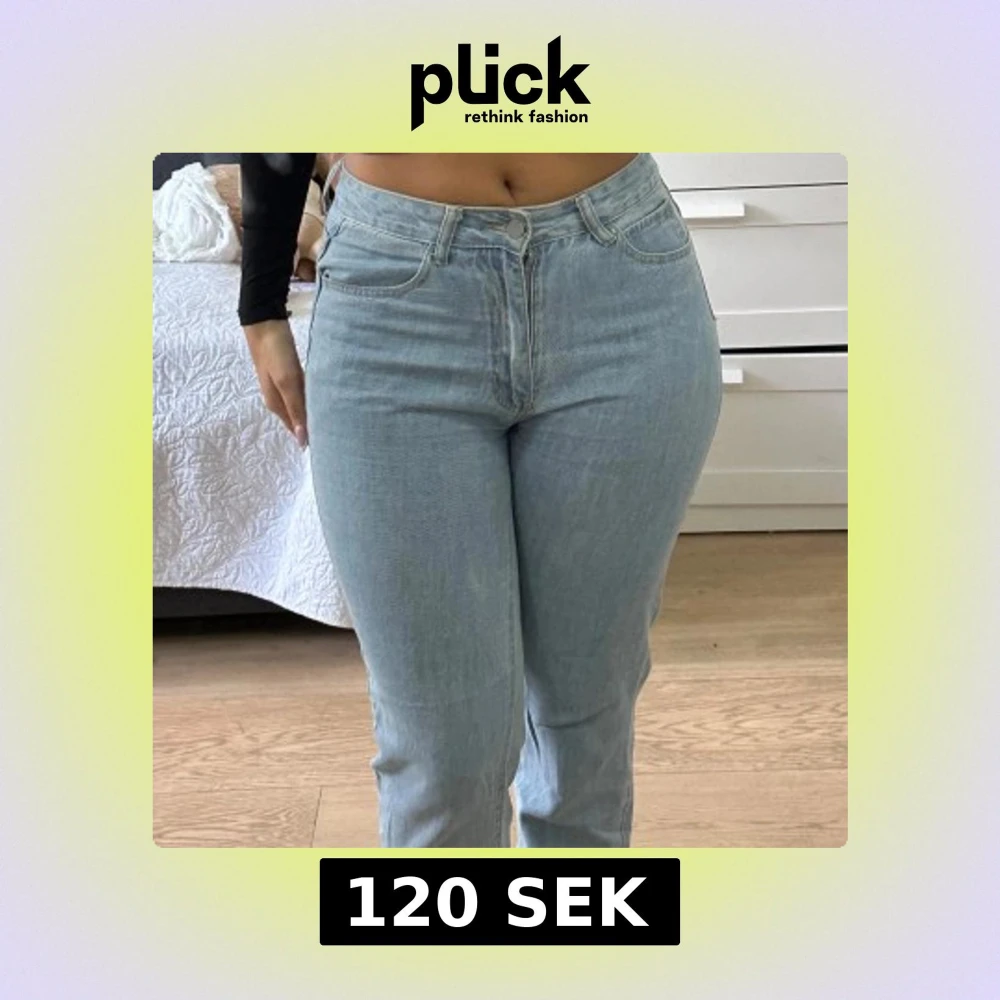 Ljusblå raka jeans som sittter olika beroende på storlek
