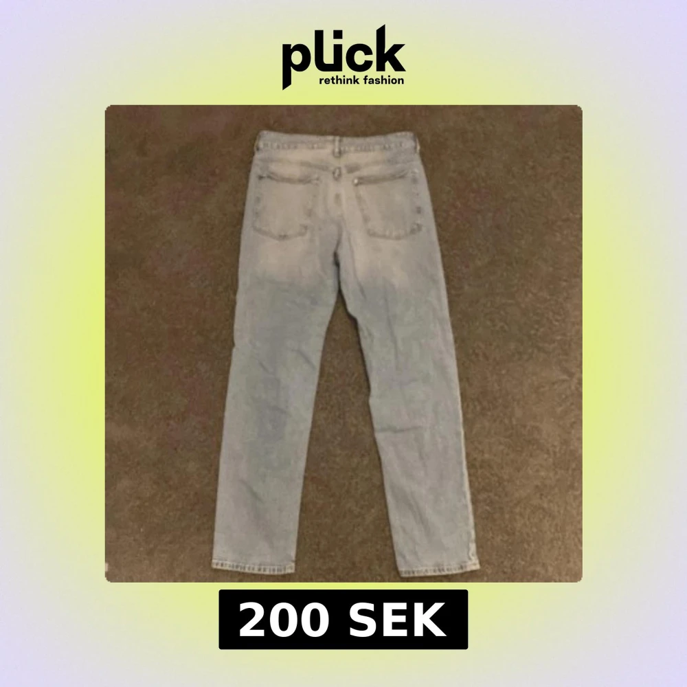 Ljusblå jeans från H&M med relaxed fit och justerbar midja. Modellen har tapered ben och klassisk femficksdesign. Perfekta för dig som gillar en avslappnad men ändå snygg stil. Jeansen är i bomull och har en lätt tvättad look. Modellen är 169cm lång