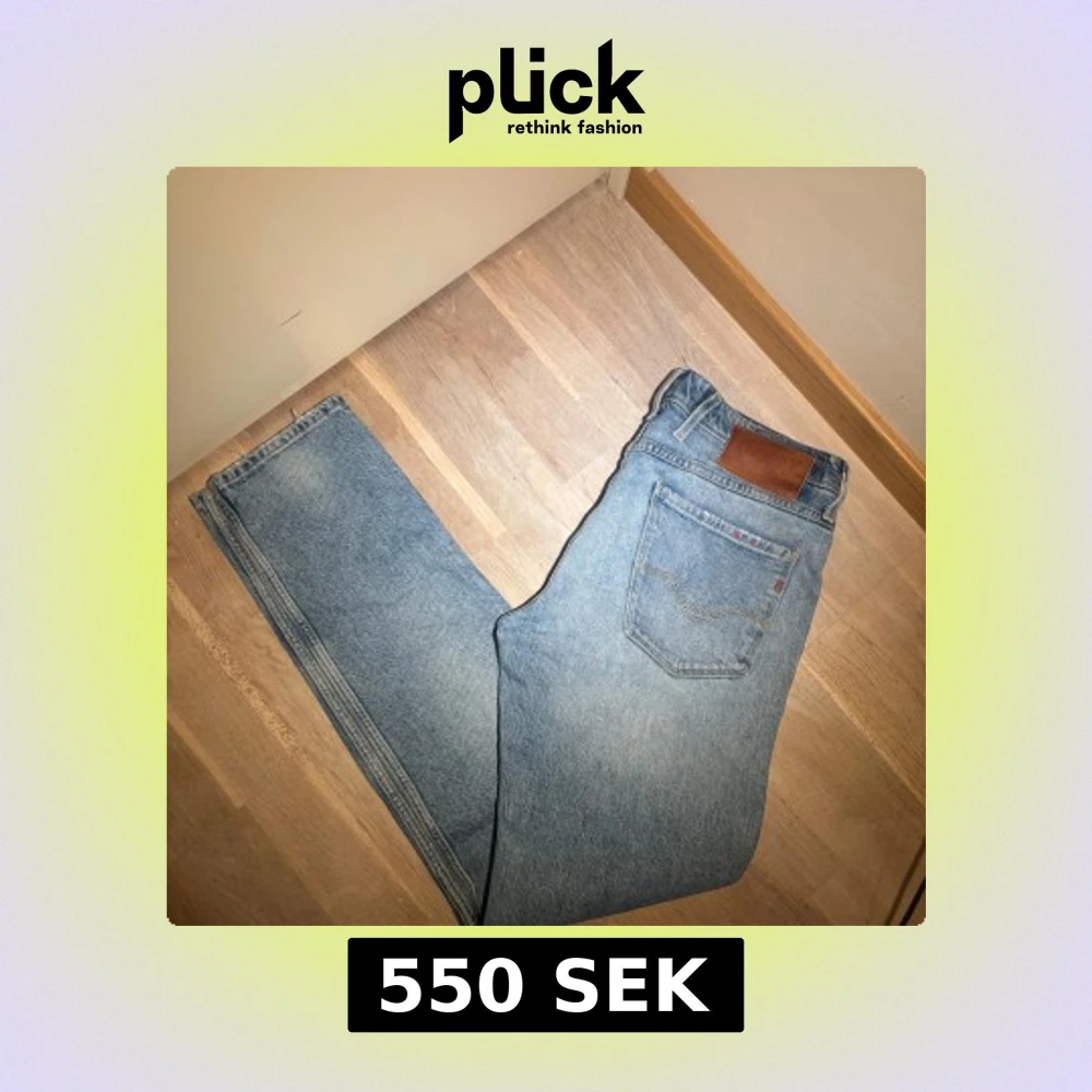 Klassiska ljusblå replay jeans med raka ben och femficksmodell. Jeansen har en brun läderpatch bak i midjan och är tillverkade i slitstarkt denim. Perfekta för en avslappnad och tidlös stil. Storlek 30/31