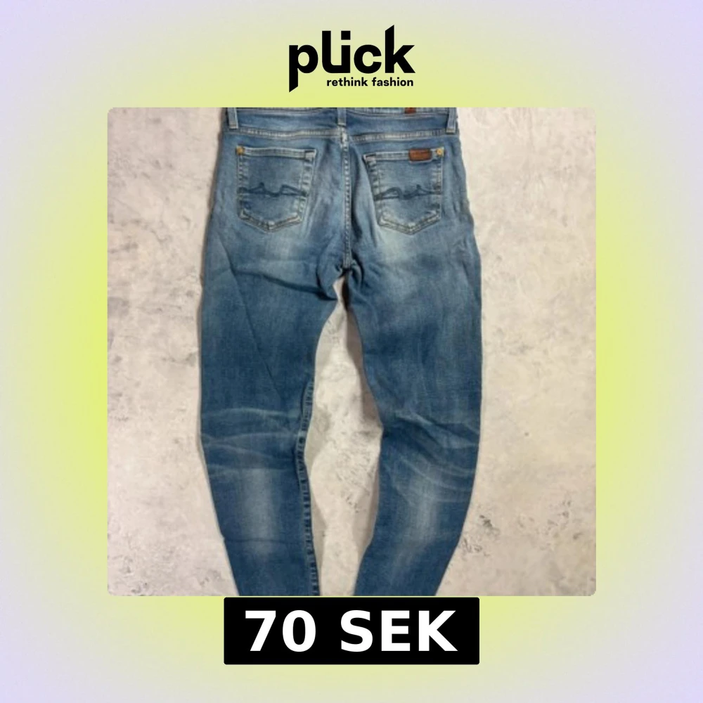 Snygga ljusblå skinny jeans från 7 For All Mankind med klassisk femficksdesign och broderade bakfickor. Jeansen har en något tvättad look och gylf med dragkedja. Perfekta för dig som gillar en smal passform och stilren denim.
