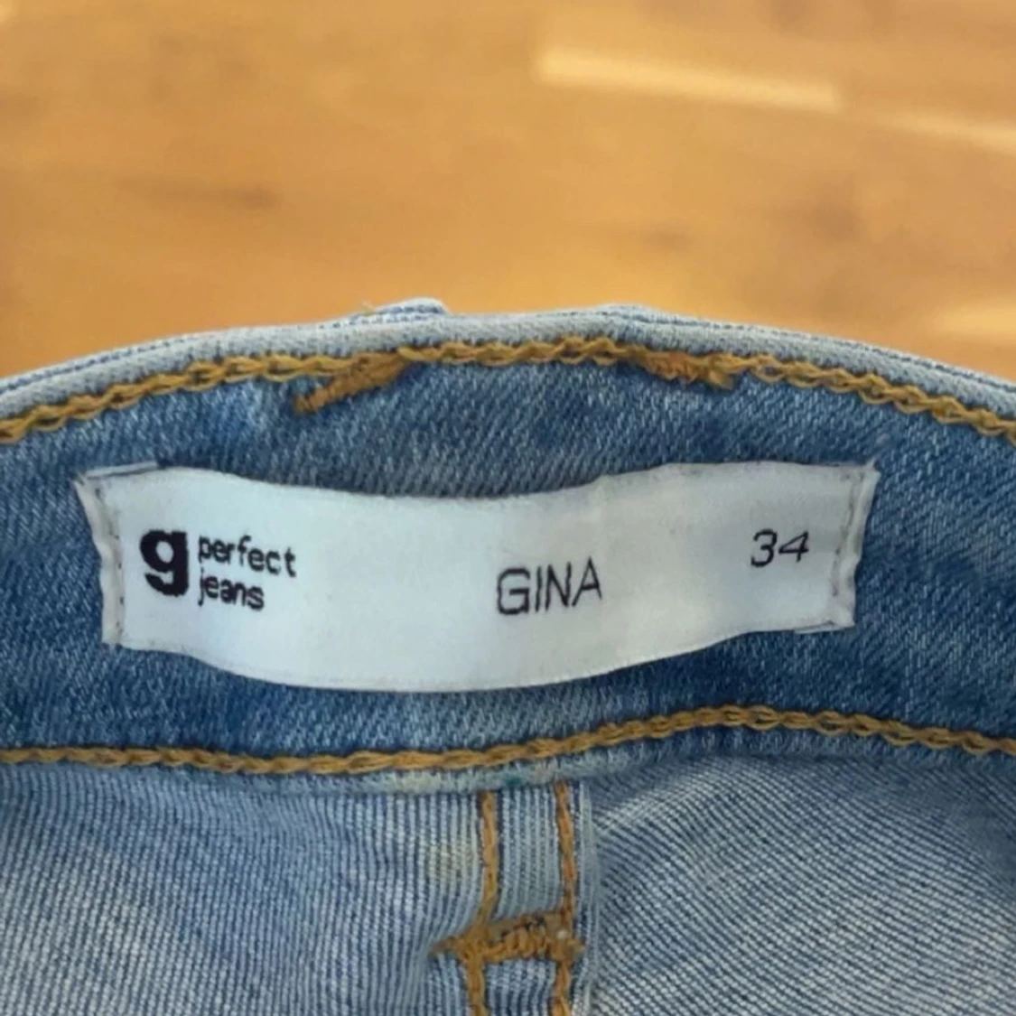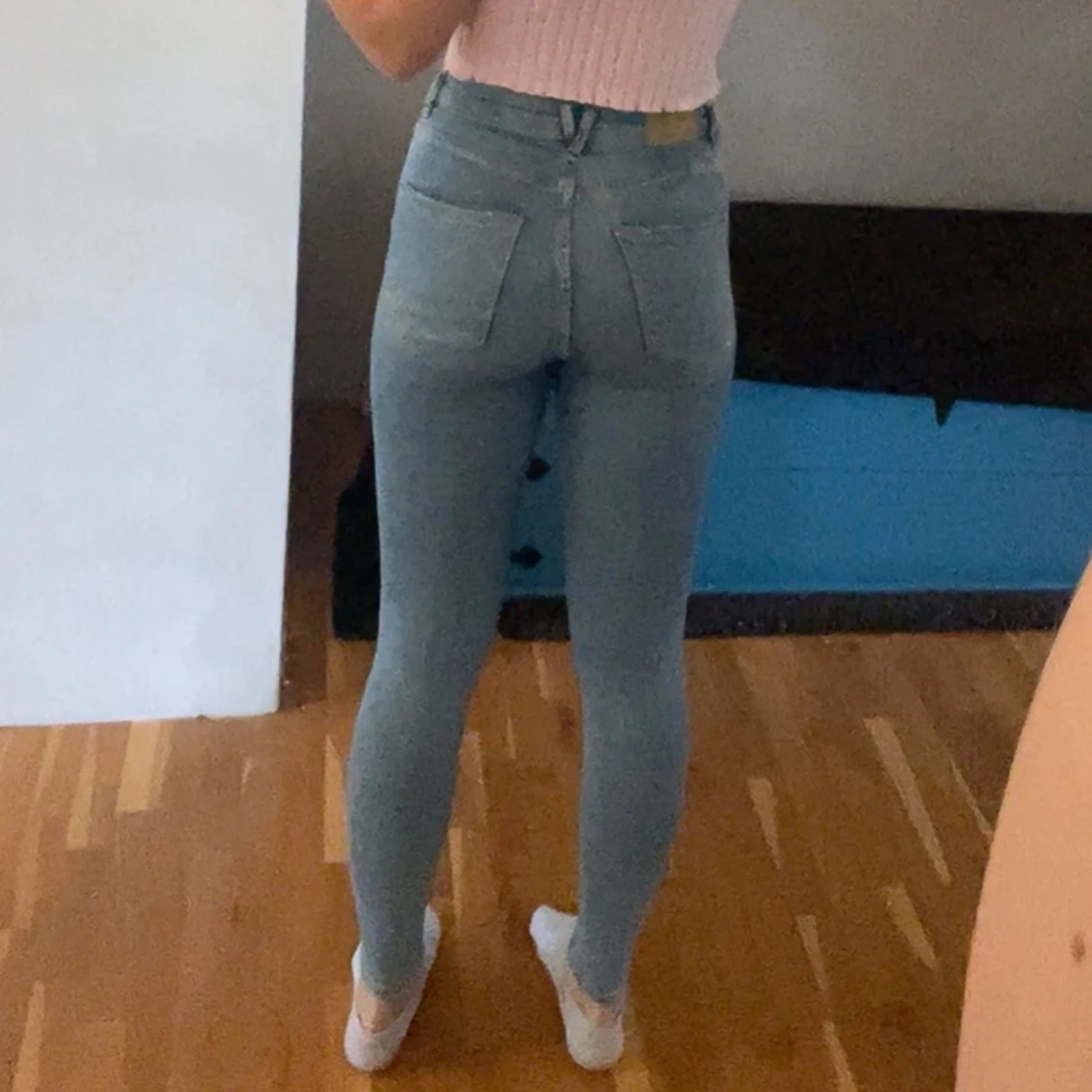 Säljer ett par ljusblå skinny jeans från Gina Tricot, modell ”Gina”. De är högmidjade och har klassisk femficksdesign med dragkedja och knapp framtill. Jeansen är i stretchigt denimtyg som sitter tight hela vägen ner. De är i storlek 34 men passar även mindre och något större då de är väldigt stretchiga! 🤍