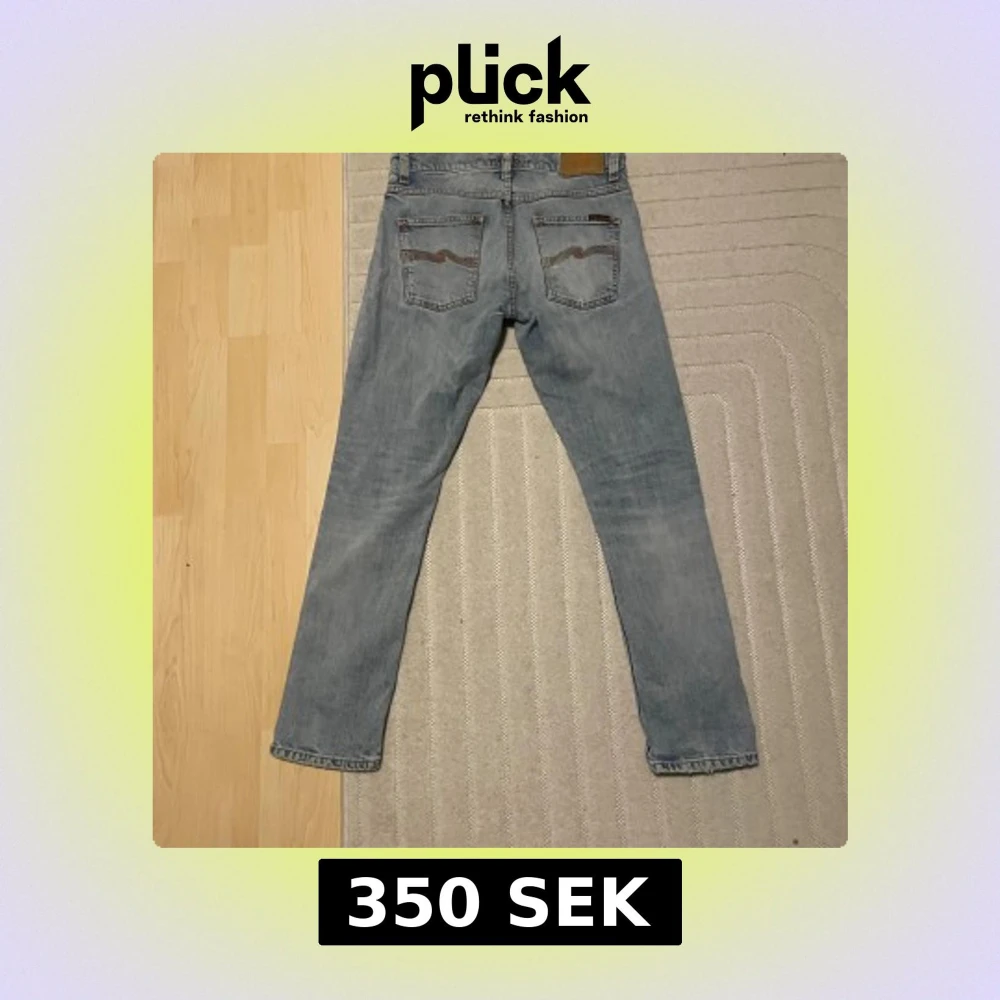 Säljer ett par ljusblå grim Tim Nudie Jeans i storlek W30 L30. Klassisk femficksmodell med snygga detaljer på bakfickorna och orange sömmar. Jeansen har en smal passform och är tillverkade i mjukt denimtyg.