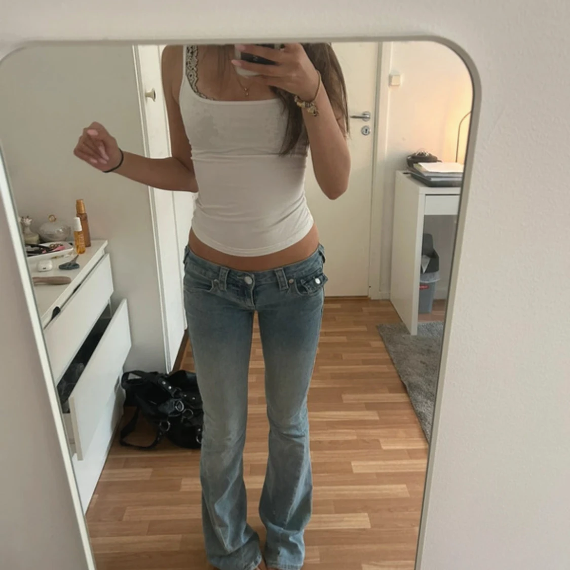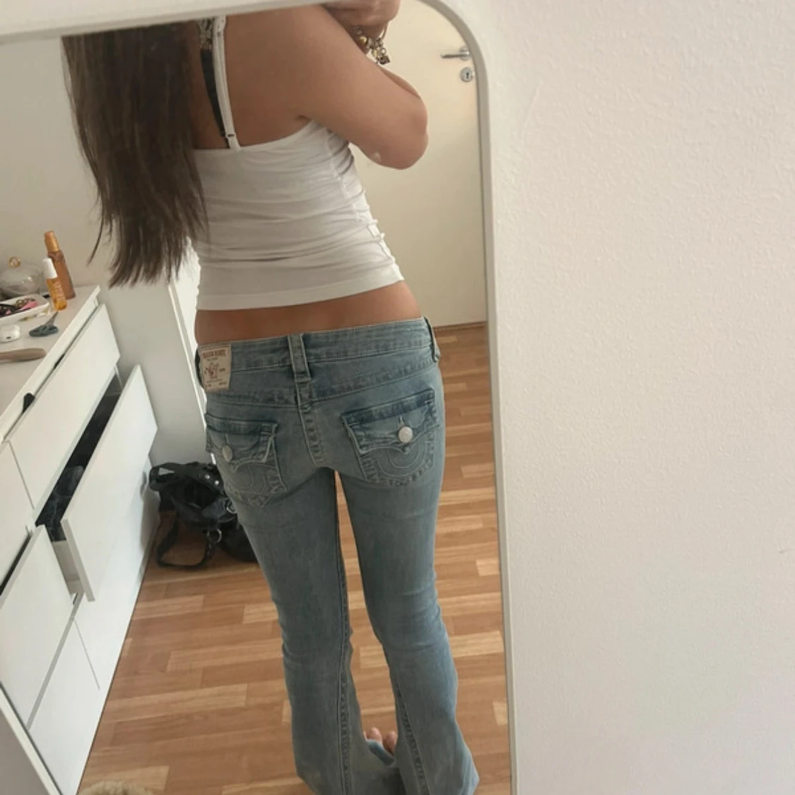 Säljer ett par ljusblå jeans från True Religion, för långa för mig därför säljer jag dom.slitage där nere pågrund av att jag gått på dom tyvärr, Är 160. Nypris 1300❤️