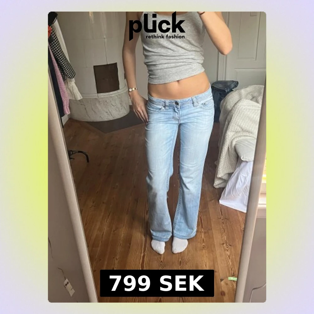 Lågmidjade jeans Midjemått =38cm Innerbenslängd= 78 cm ( jag är 173 cm)