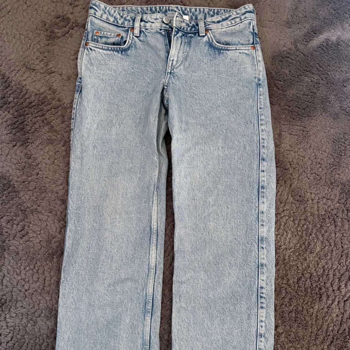 Säljer ett par ljusblå Arrow Low Straight Jeans från Weekday. Modellen har låg midja och raka ben💞