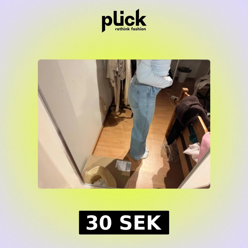 Säljer ett par ljusblå jeans med breda ben. Modellen är loose fit och har medelhög midja. De är tyvärr för små för mig nu (andra bilden passade de mig)