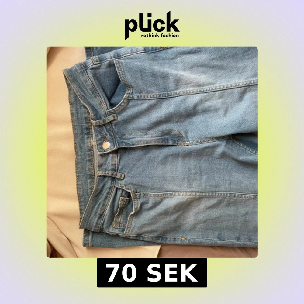 Säljer ett par ljusblå jeans med breda ben och klassisk femficksdesign. Jeansen har hög midja, raka sömmar och är tillverkade i mjukt denimtyg. Perfekta för en avslappnad och trendig look.